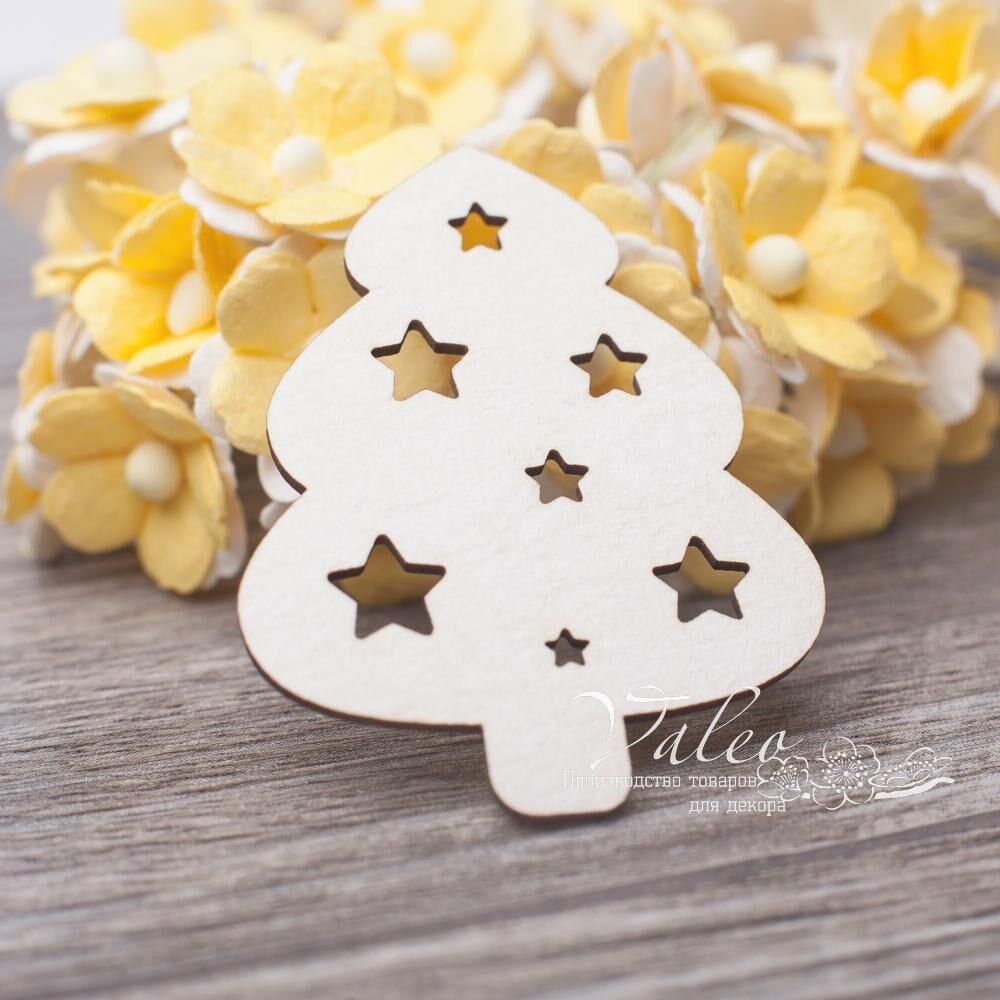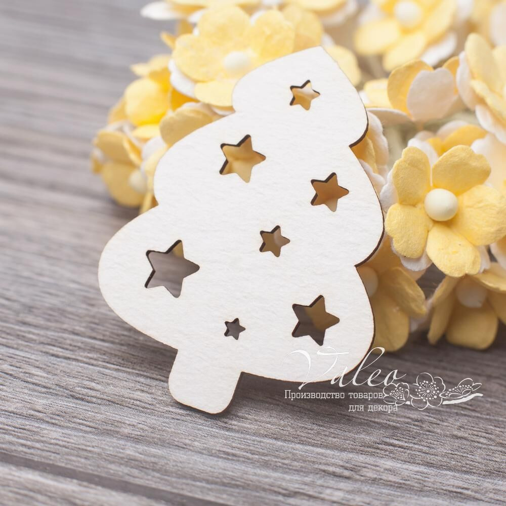 Чіпборд Valeo Ялинка 36*47мм V3129 виготовлений із пивного картону молочного кольору. Товщина картону 1,5 мм. Краї чисті, світло-коричневі. Застосовується як декоративні елементи при виготовленні альбомів, листівок, запрошень