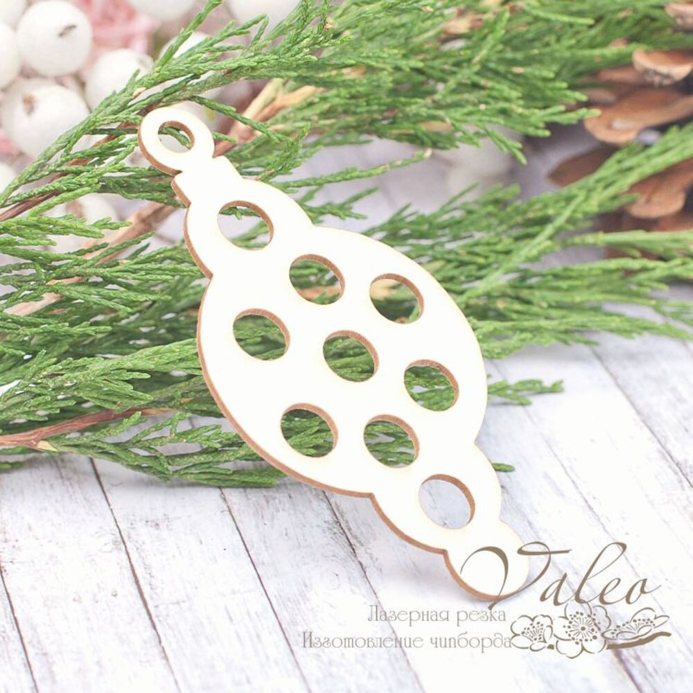 Чіпборд Valeo Ялинкова іграшка горох 46*92мм V1969 виготовлена з пивного картону молочного кольору. Товщина картону 1,5 мм. Краї чисті, світло-коричневі. Застосовується як декоративні елементи при виготовленні альбомів, листівок, запрошень