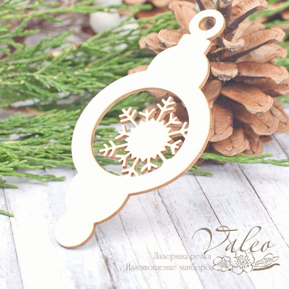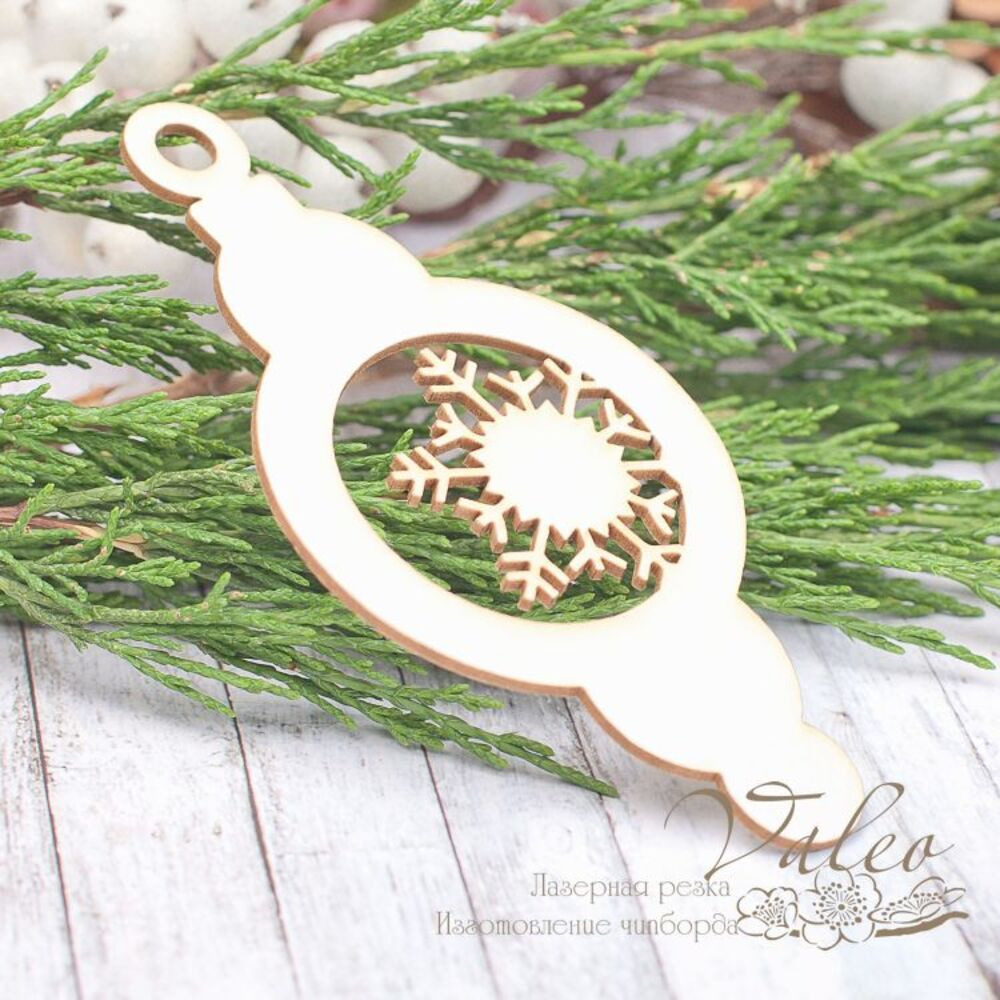Чіпборд Valeo Ялинкова іграшка сніжинка 46*92мм V1973 виготовлена з пивного картону молочного кольору.Товщина картону 1,5 мм. Краї чисті, світло-коричневі. Застосовується як декоративні елементи при виготовленні альбомів, листівок, запрошень