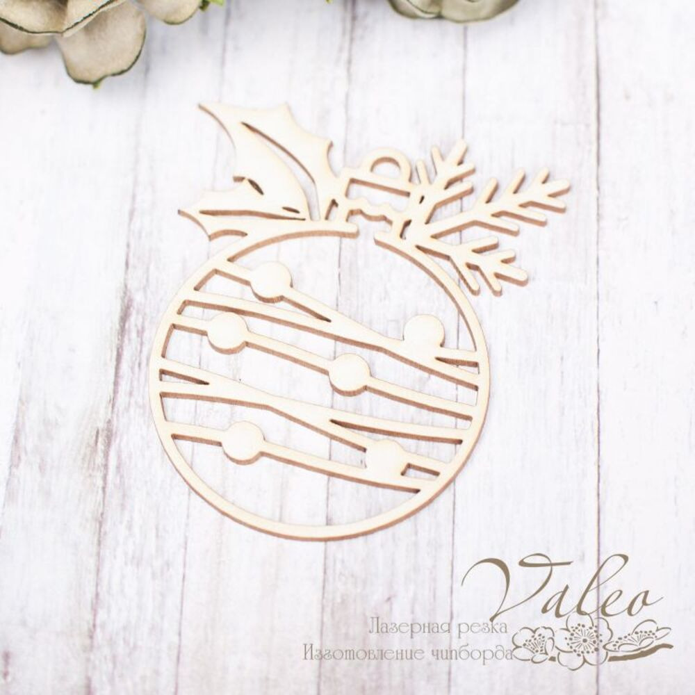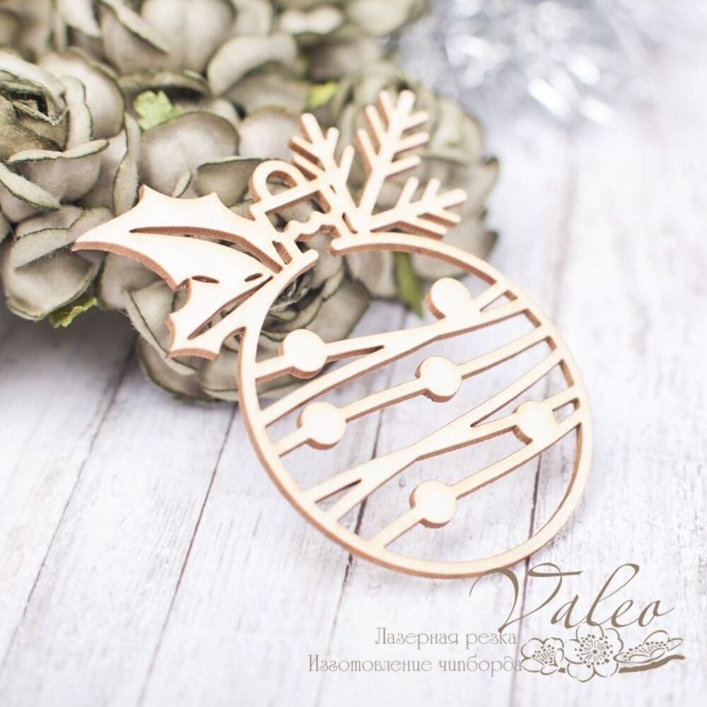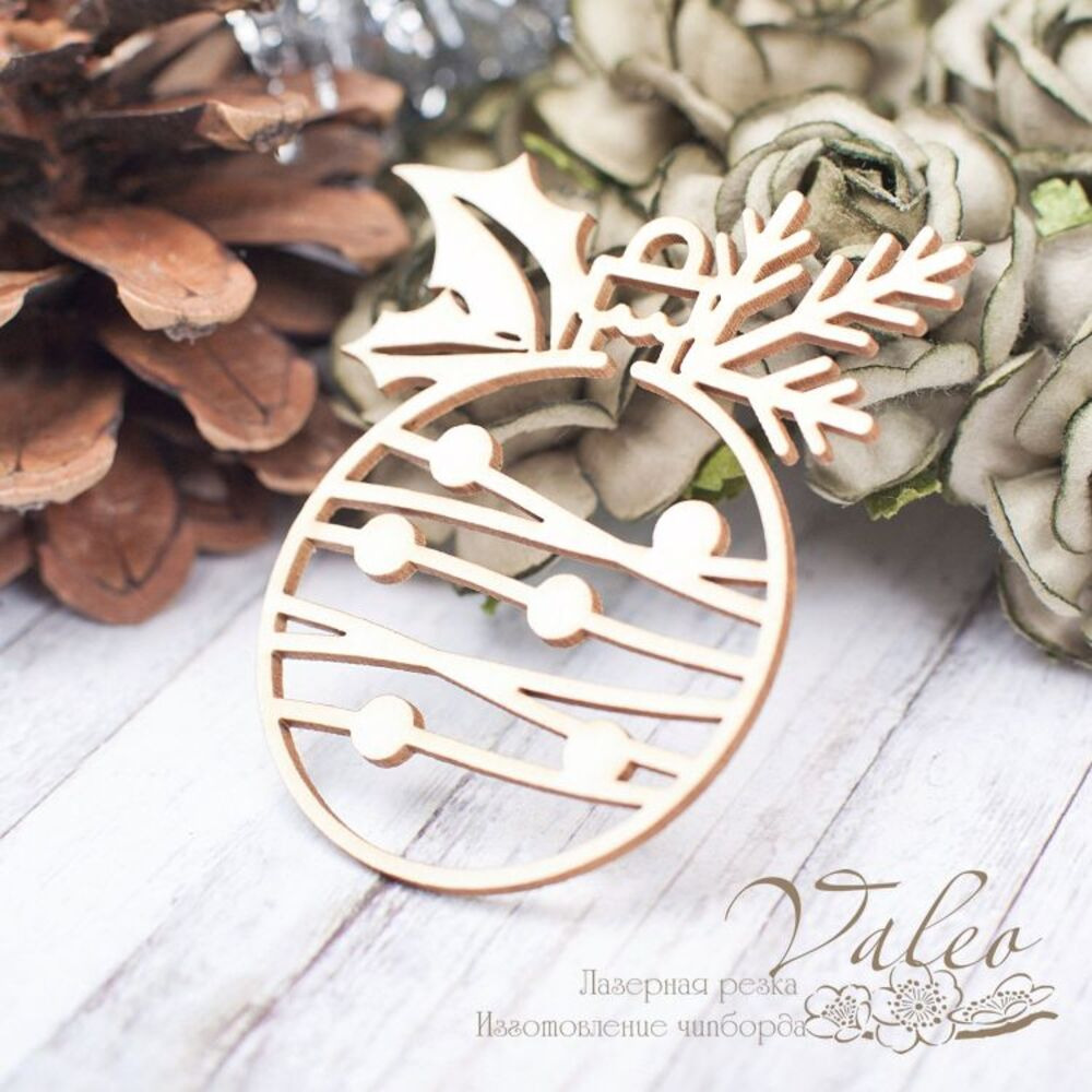 Чіпборд Valeo Ялинкова куля 51*59мм V2246 виготовлена з пивного картону молочного кольору. Товщина картону 1,5 мм. Краї чисті, світло-коричневі. Застосовується як декоративні елементи при виготовленні альбомів, листівок, запрошень