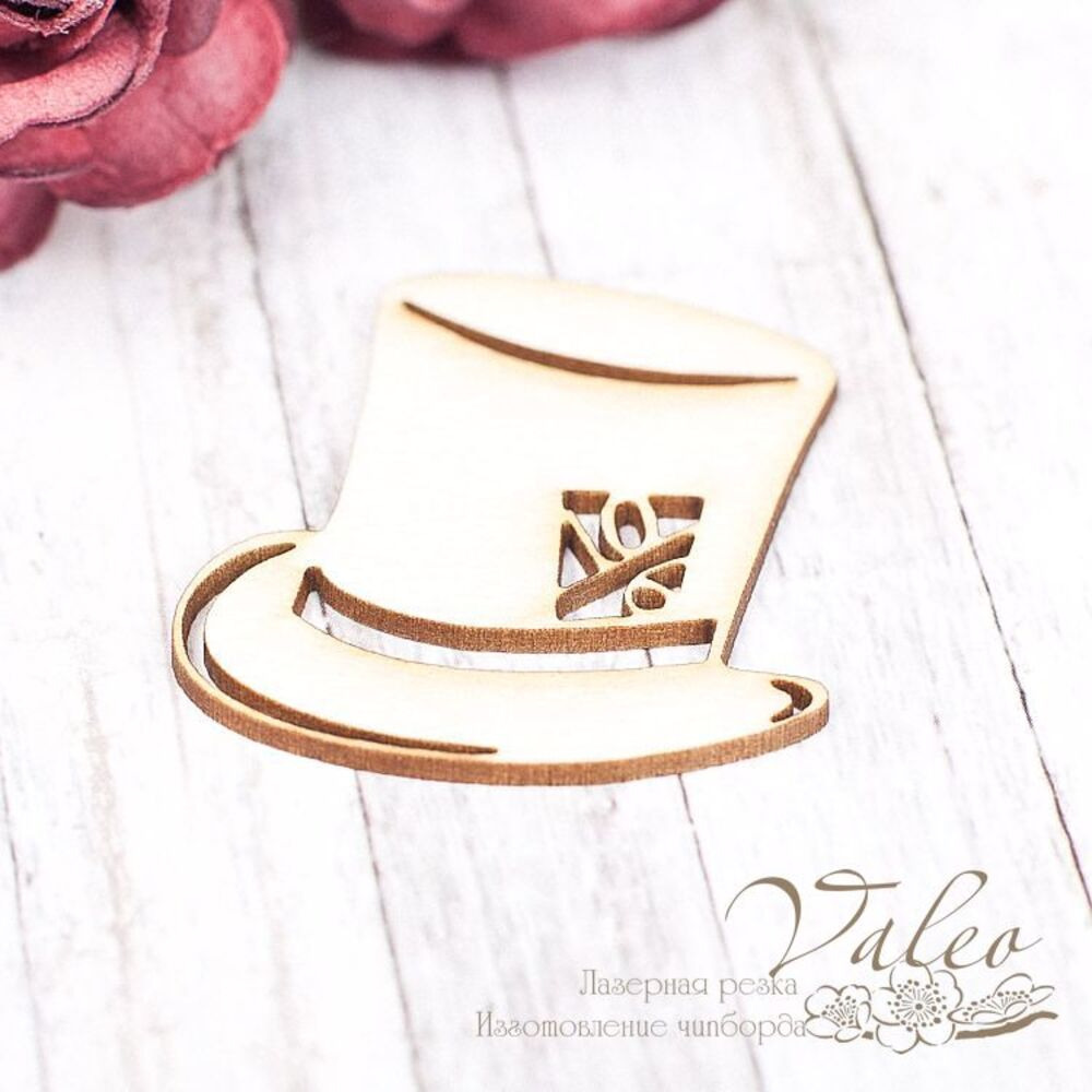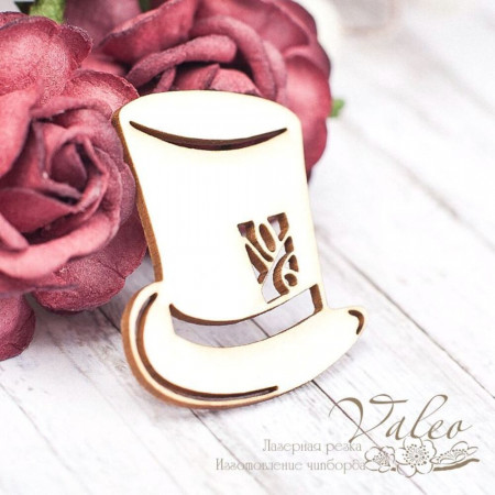 Чіпборд Valeo Капелюх циліндр 37*36мм V1645 виготовлений із пивного картону молочного кольору. Товщина картону 1,5 мм. Краї чисті, світло-коричневі. Застосовується як декоративні елементи при виготовленні альбомів, листівок, запрошень