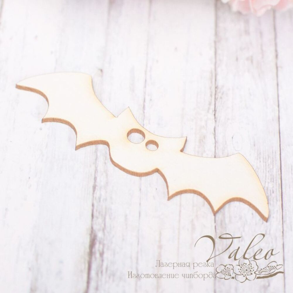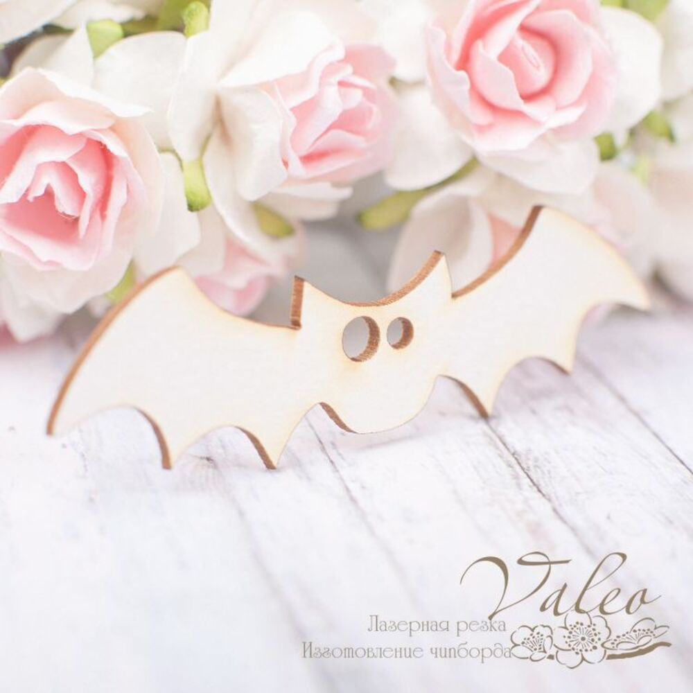 Чипборд Valeo Кажан 67*24мм V1930 виготовлений з пивного картону молочного кольору. Товщина картону 1,5 мм. Краї чисті, світло-коричневі. Застосовується як декоративні елементи при виготовленні альбомів, листівок, запрошень