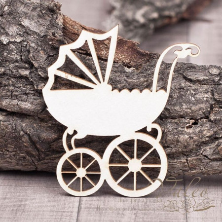 Чіпборд Valeo Коляска 59*66мм V1327 виготовлений із пивного картону молочного кольору. Товщина картону 1,5 мм. Краї чисті, світло-коричневі. Застосовується як декоративні елементи при виготовленні альбомів, листівок, запрошень