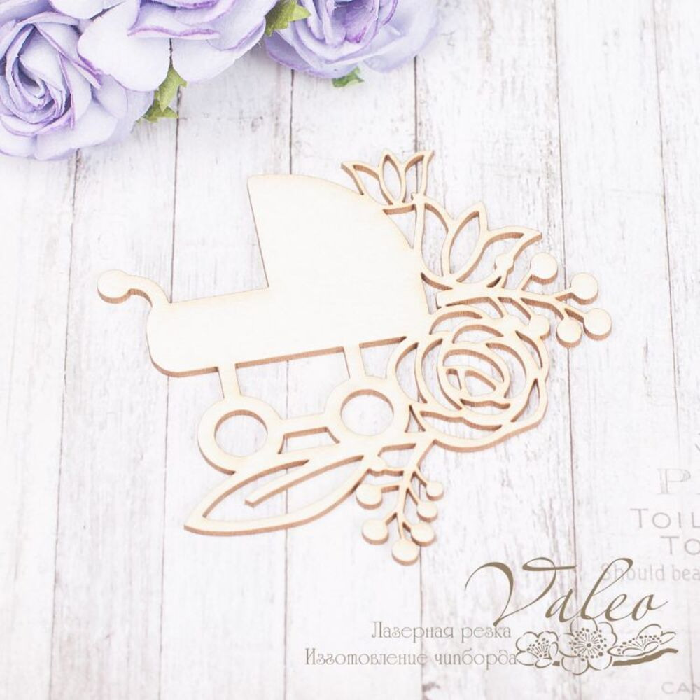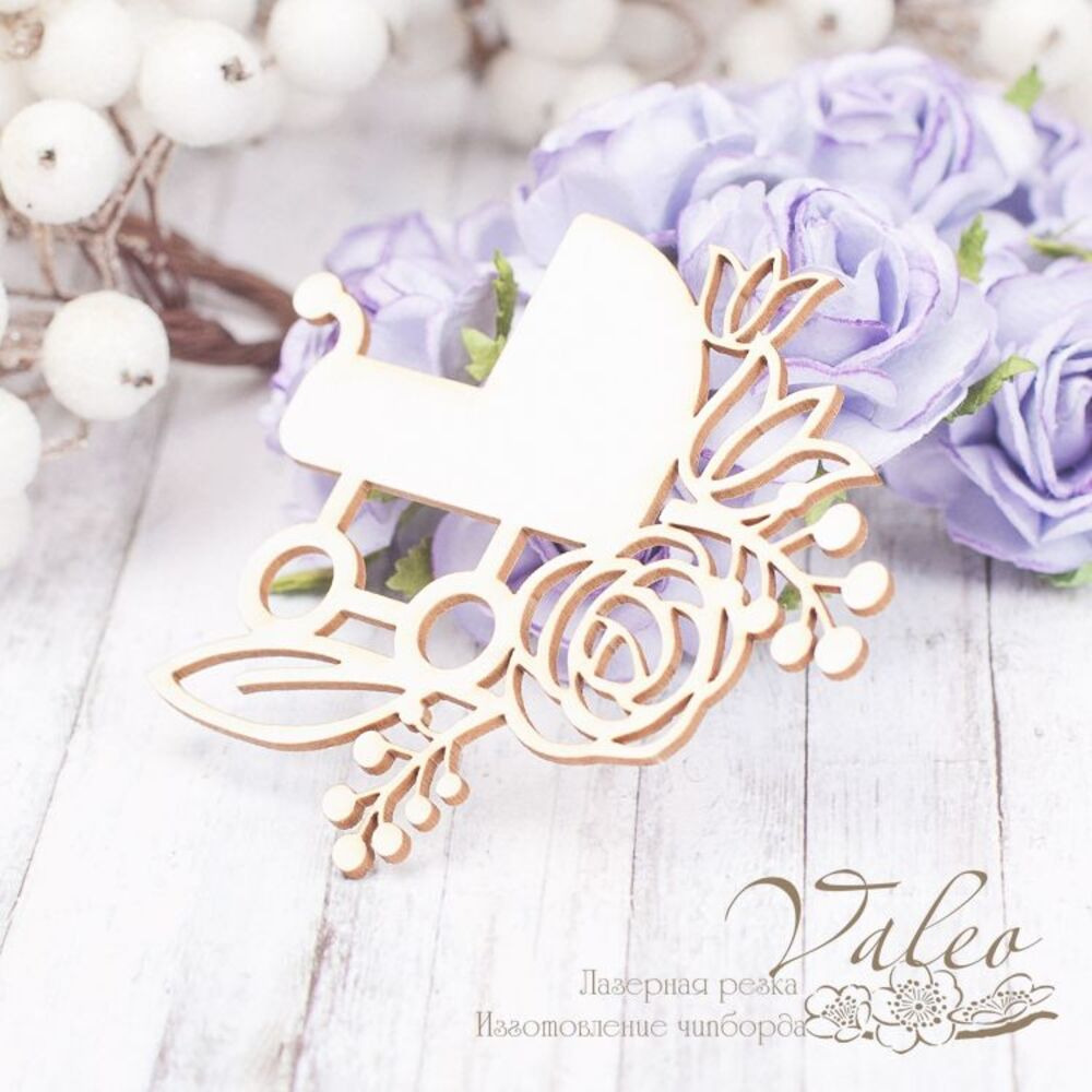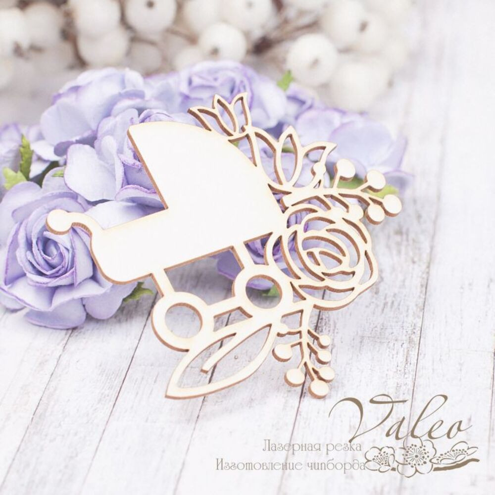 Чіпборд Valeo Коляска 75*71мм V2198 виготовлений із пивного картону молочного кольору. Товщина картону 1,5 мм. Краї чисті, світло-коричневі.Застосовується як декоративні елементи при виготовленні альбомів, листівок, запрошень