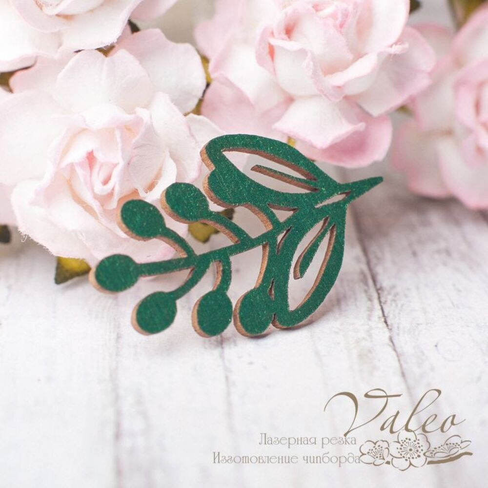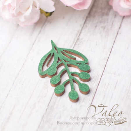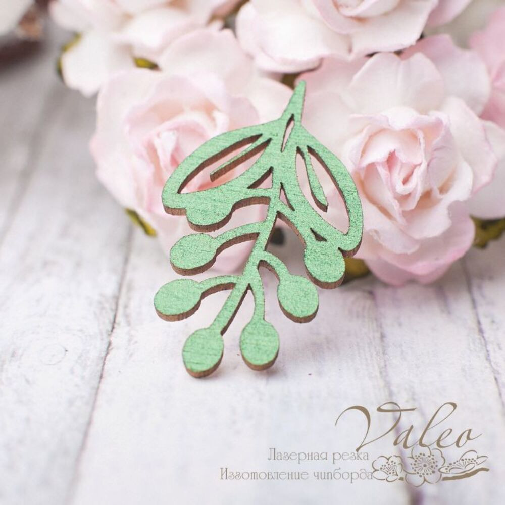 Чіпборд Valeo Гілочка 20*34мм зелений перламутр V2617 виготовлений із пивного картону молочного кольору. Товщина картону 1,5 мм. Краї чисті, світло-коричневі.Застосовується як декоративні елементи при виготовленні альбомів, листівок, запрошень