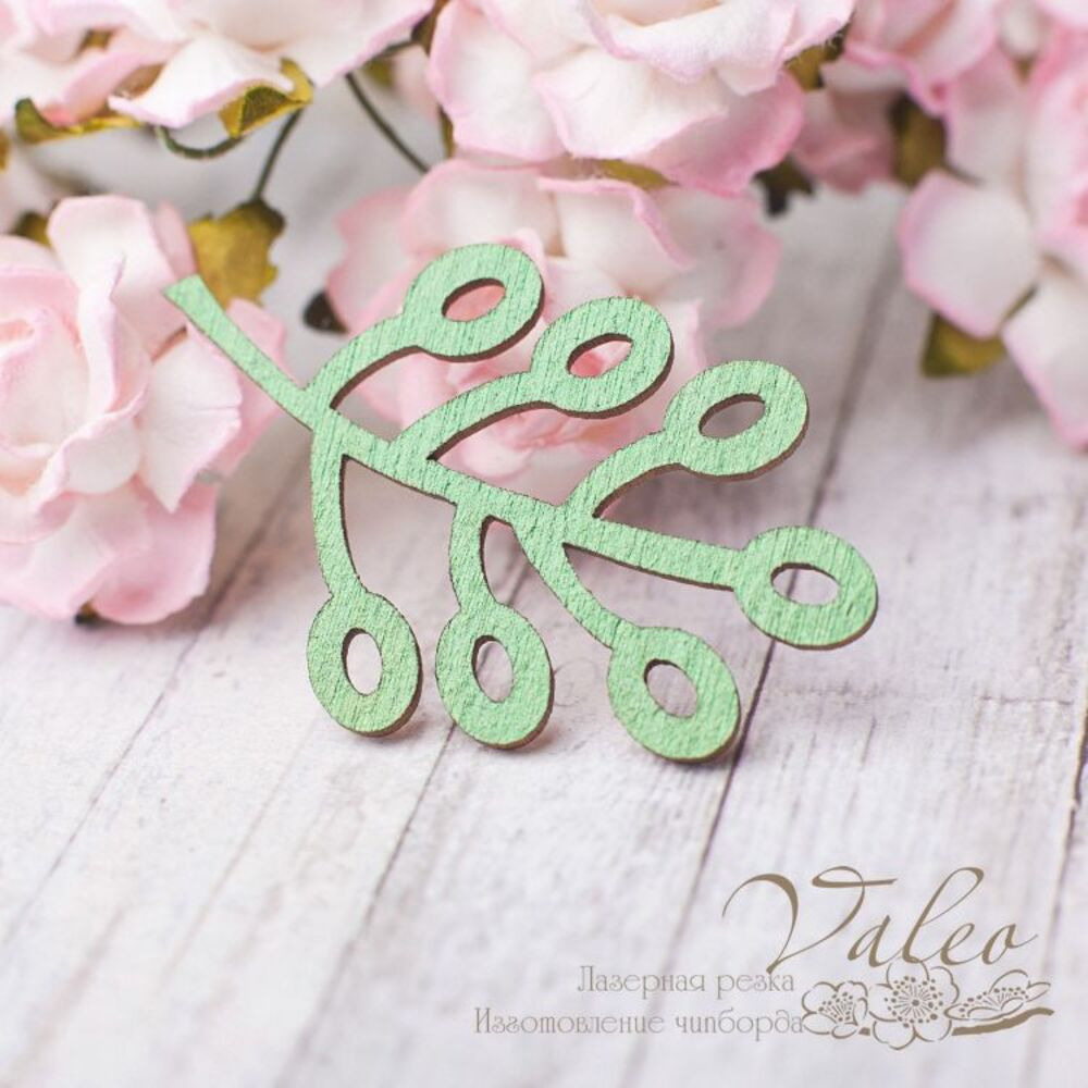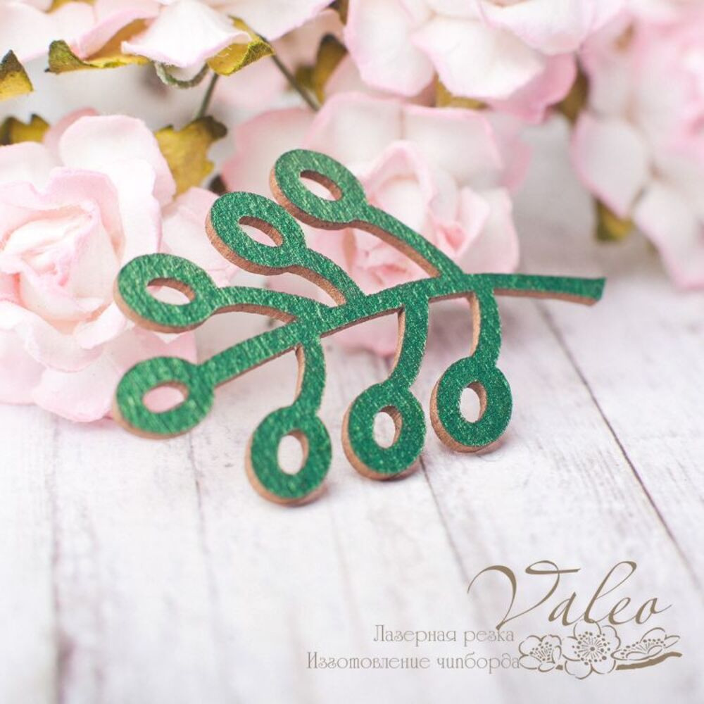 Чіпборд Valeo Гілочка 27*44мм зелений перламутр V2615 виготовлений із пивного картону молочного кольору. Товщина картону 1,5 мм. Краї чисті, світло-коричневі. Застосовується як декоративні елементи при виготовленні альбомів, листівок, запрошень