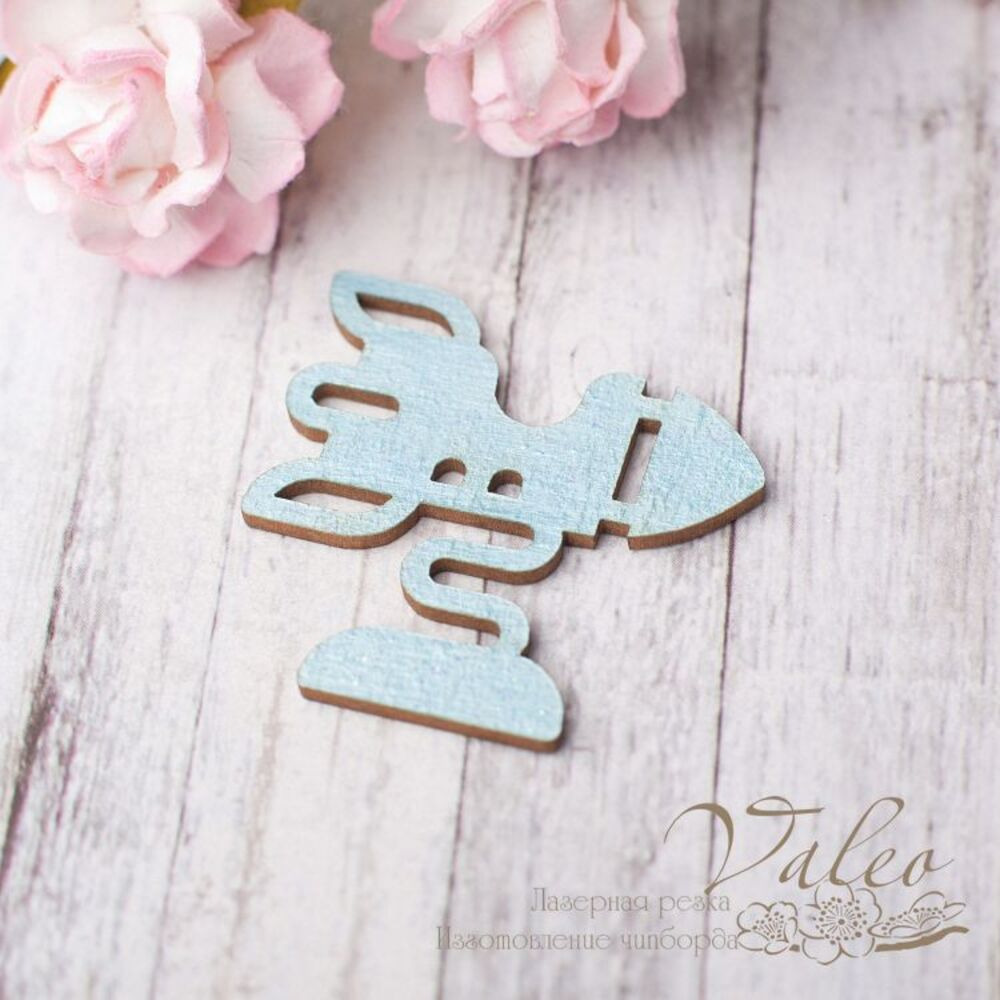 Чіпборд Valeo Іграшка дитяча 32*32мм блакитний з глітером V2605 виготовлений із пивного картону молочного кольору. Товщина картону 1,5 мм. Краї чисті, світло-коричневі. Застосовується як декоративні елементи при виготовленні альбомів, листівок, запрошень