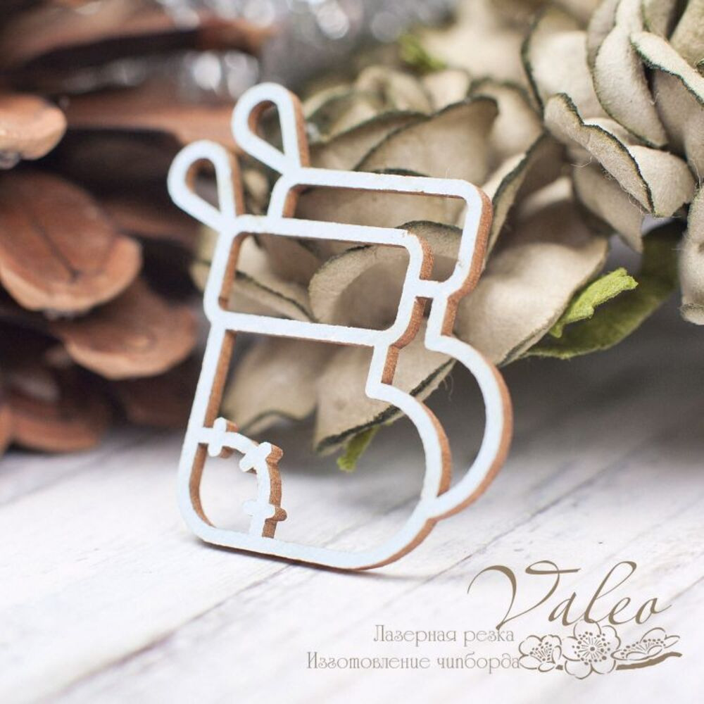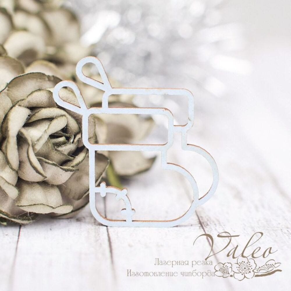 Чіпборд Valeo кольоровий Новорічний чобіт блакитний матовий 32*38мм V2254 виготовлений з пивного картону молочного кольору. Товщина картону 1,5 мм. Краї чисті, світло-коричневі. Застосовується як декоративні елементи при виготовленні альбомів, листівок, запрошень