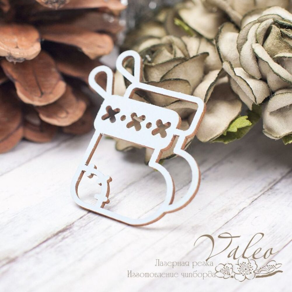Чіпборд Valeo кольоровий Новорічний чобіт блакитний матовий 36*44мм V2258 виготовлений з пивного картону молочного кольору. Товщина картону 1,5 мм. Краї чисті, світло-коричневі. Застосовується як декоративні елементи при виготовленні альбомів, листівок, запрошень