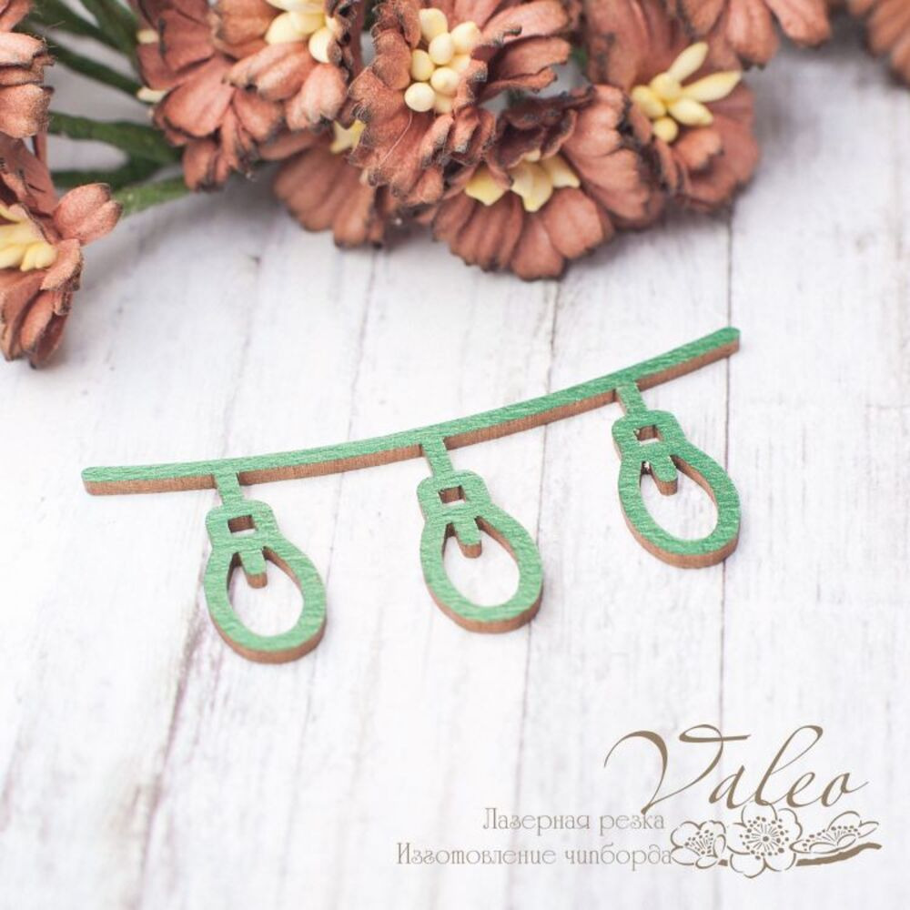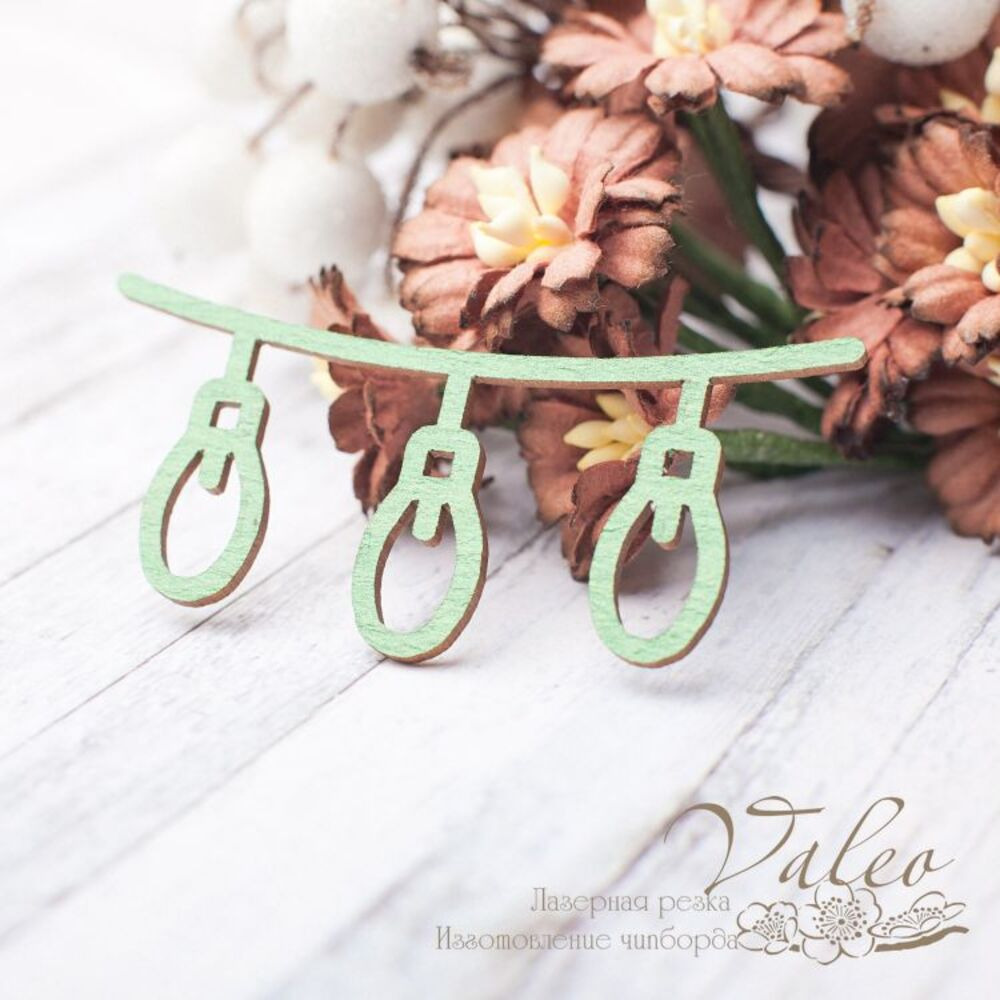 Чіпборд Valeo кольоровий Підвіска ліхтарики 59*27мм зелений перламутр V2418 виготовлений з пивного картону молочного кольору. Товщина картону 1,5 мм. Краї чисті, світло-коричневі. Застосовується як декоративні елементи при виготовленні альбомів, листівок, запрошень