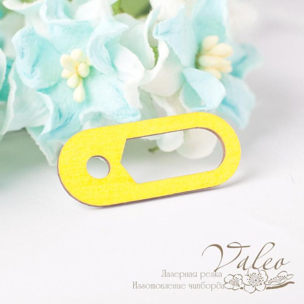 Чіпборд Valeo кольоровий Скріпка 14*32мм жовтий з глітером V2686 виготовлений із пивного картону молочного кольору. Товщина картону 1,5 мм. Краї чисті, світло-коричневі. Застосовується як декоративні елементи при виготовленні альбомів, листівок, запрошень