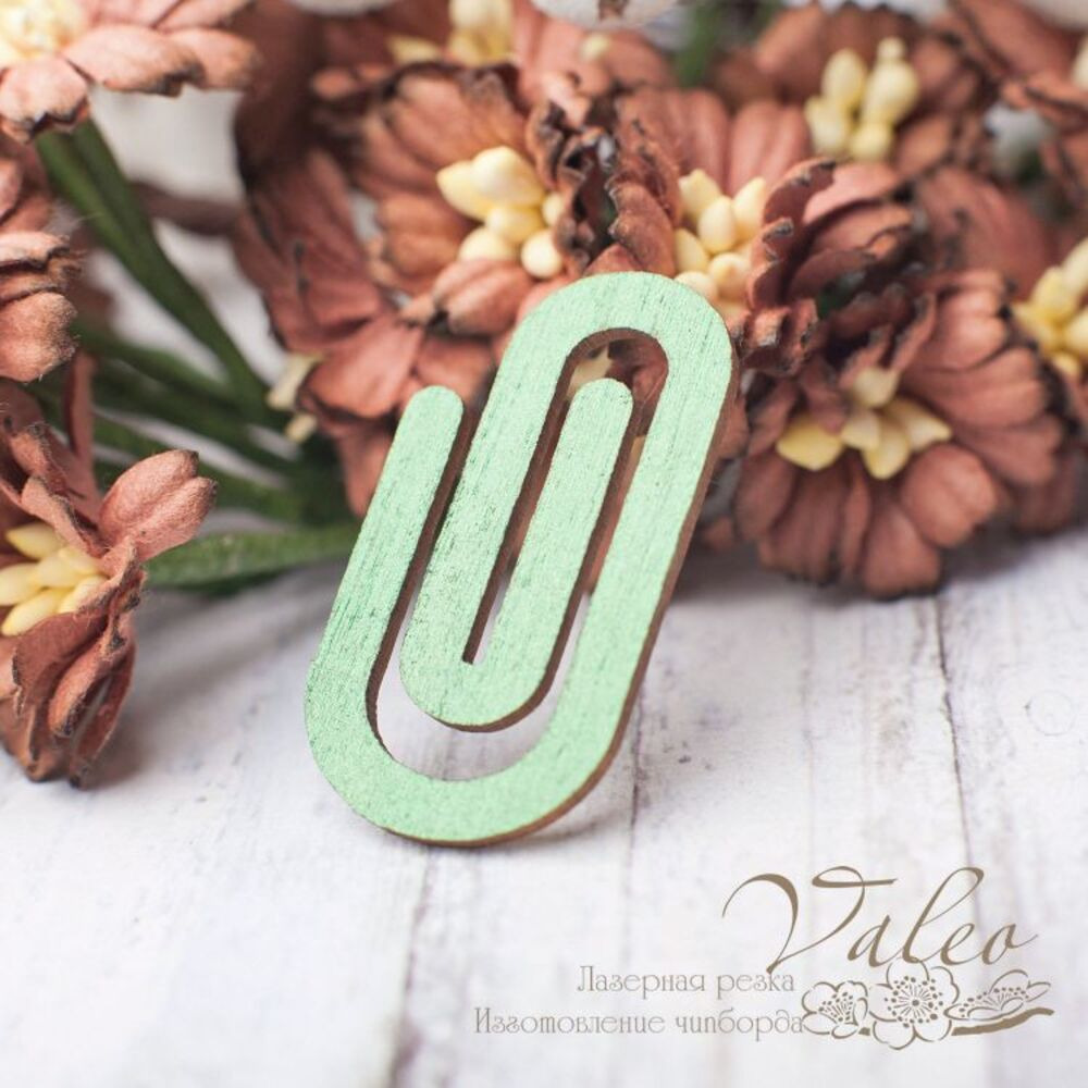 Чіпборд Valeo кольоровий Скріпка 19*33мм зелений перламутр V2433 виготовлений із пивного картону молочного кольору. Товщина картону 1,5 мм. Краї чисті, світло-коричневі. Застосовується як декоративні елементи при виготовленні альбомів, листівок, запрошень