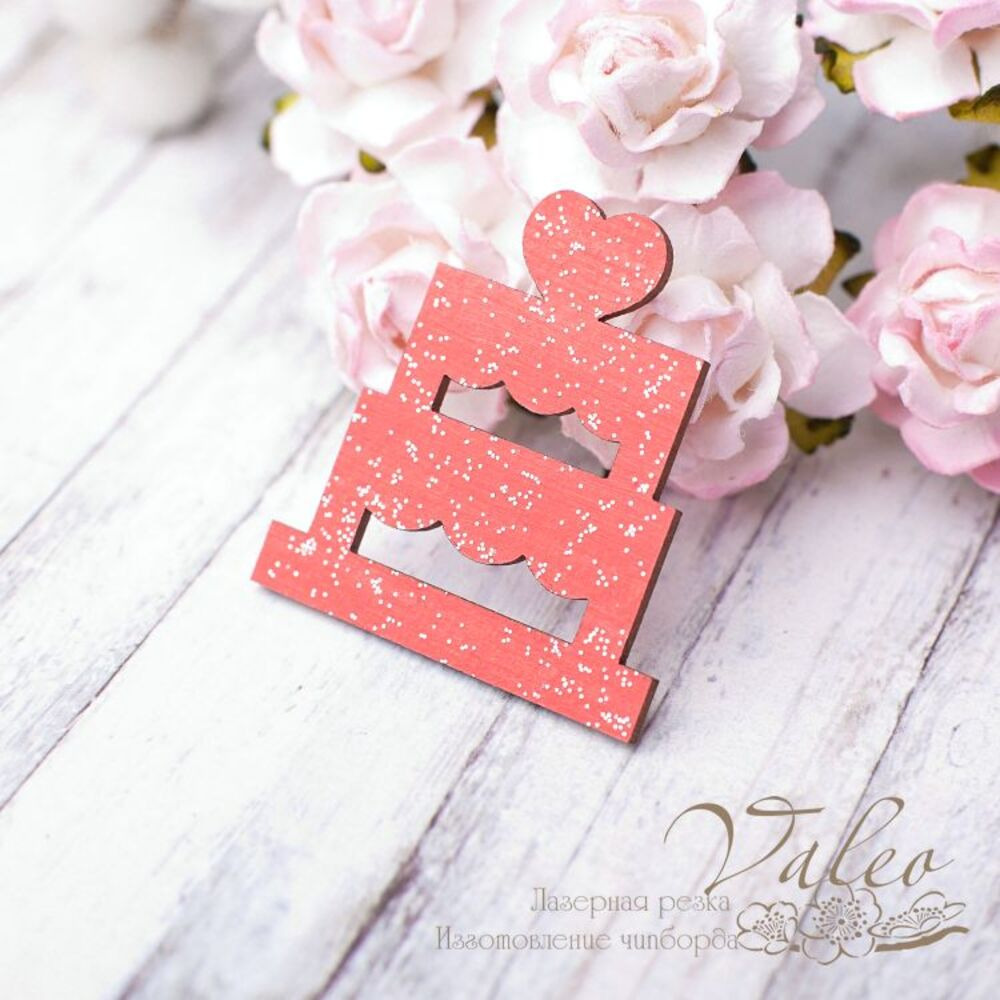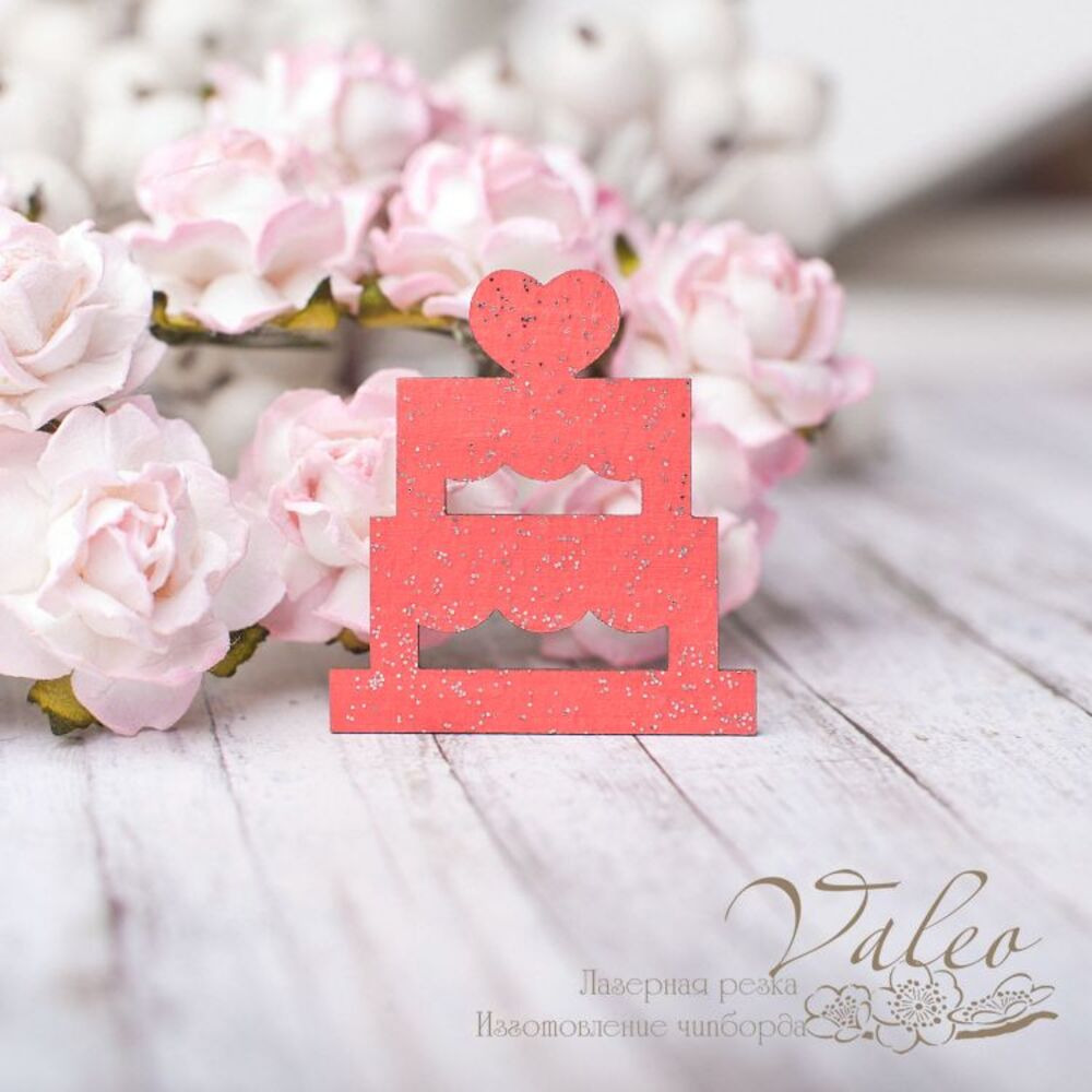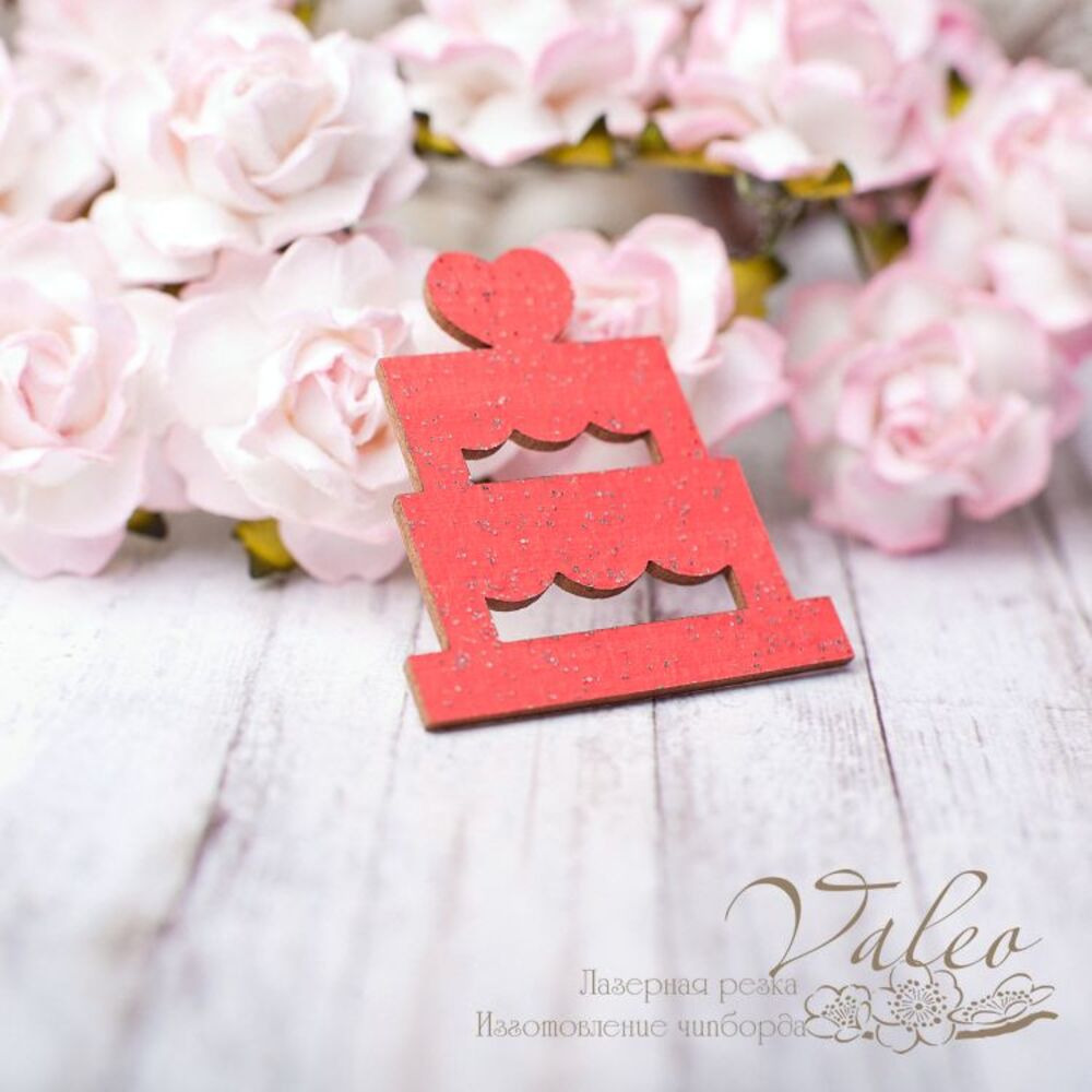 Чіпборд Valeo кольоровий Тортик 34*36мм червоний з гліттером V2609 виготовлений із пивного картону молочного кольору. Товщина картону 1,5 мм. Краї чисті, світло-коричневі.Застосовується як декоративні елементи при виготовленні альбомів, листівок, запрошень