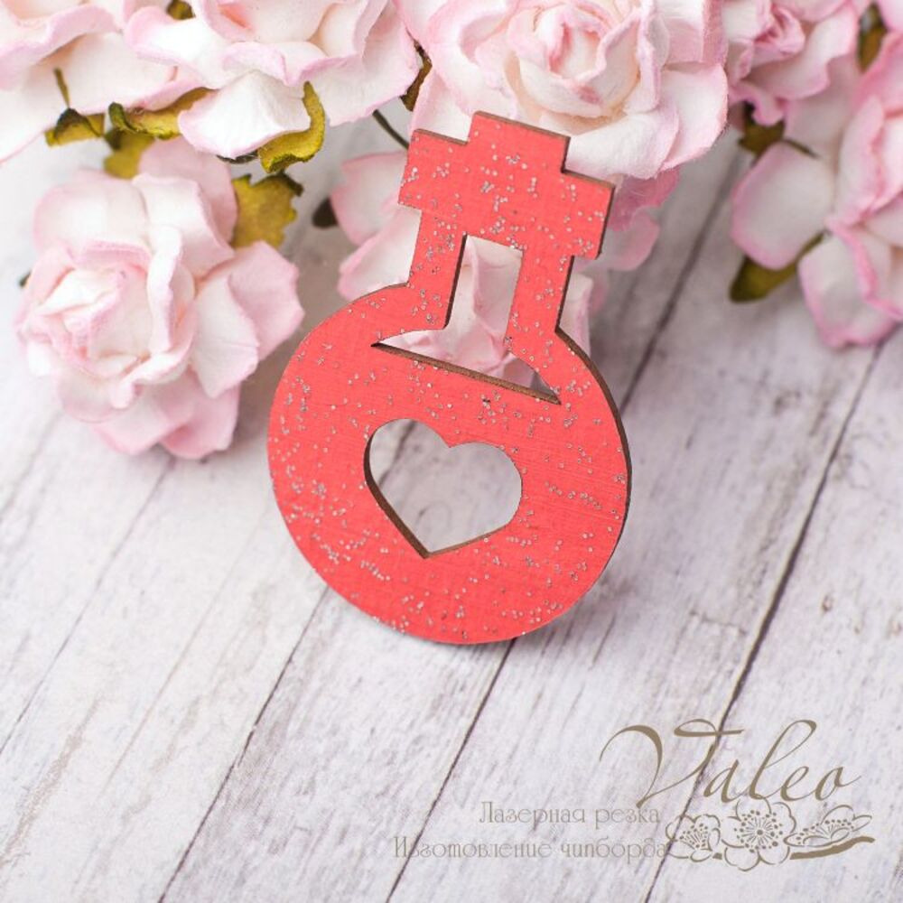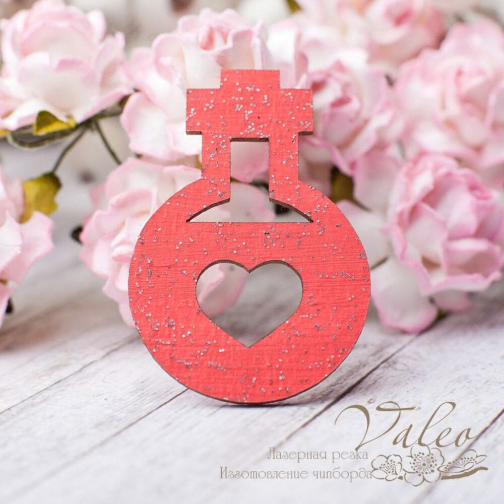 Чіпборд Valeo кольорової Парфуми 29*42мм червоний з гліттером V2608 виготовлений із пивного картону молочного кольору. Товщина картону 1,5 мм. Краї чисті, світло-коричневі. Застосовується як декоративні елементи при виготовленні альбомів, листівок, запрошень