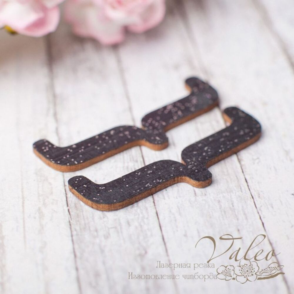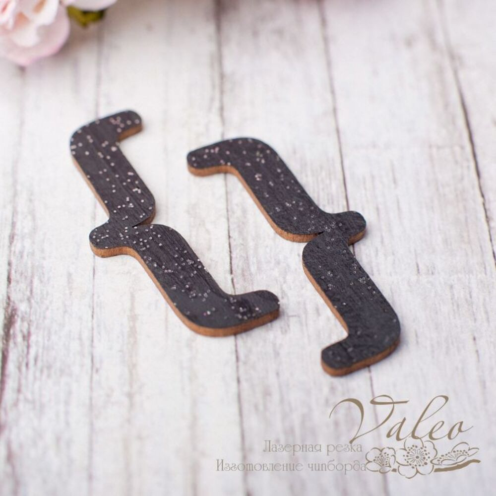 Чіпборд Valeo Дужки 2шт 41*16мм чорний з гліттером V2640 виготовлений із пивного картону молочного кольору. Товщина картону 1,5 мм. Краї чисті, світло-коричневі. Застосовується як декоративні елементи при виготовленні альбомів, листівок, запрошень