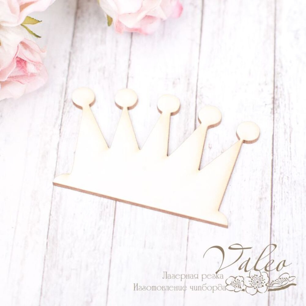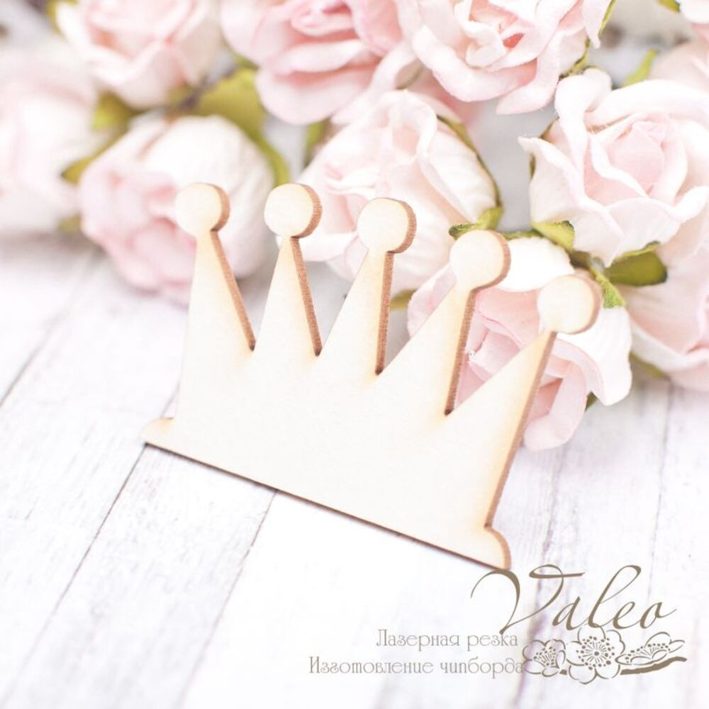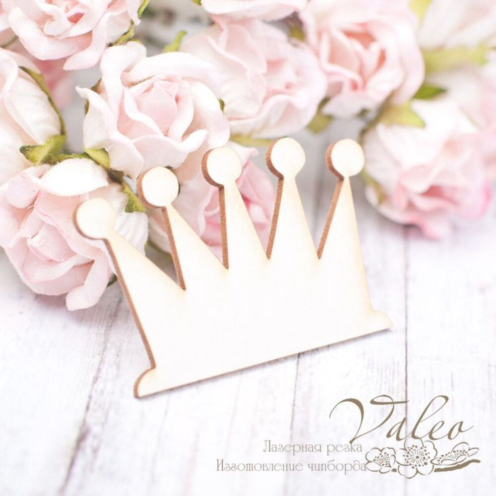 Чипборд Valeo Корона 48*31мм V2079 изготовлен из пивного картона молочного цвета. Толщина картона 1,5мм. Края чистые, светло коричневые. Применяется в качестве декоратиных элементов при изготовлении альбомов, открыток, пригласительных