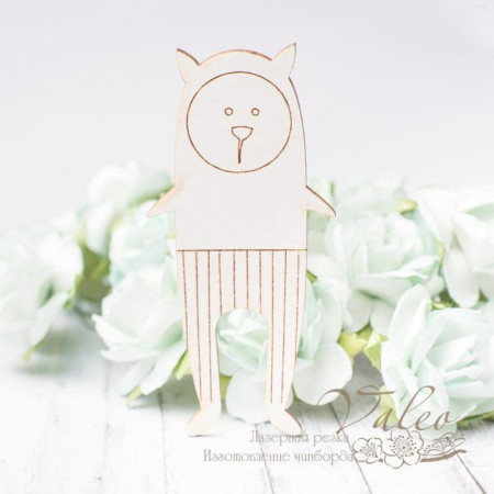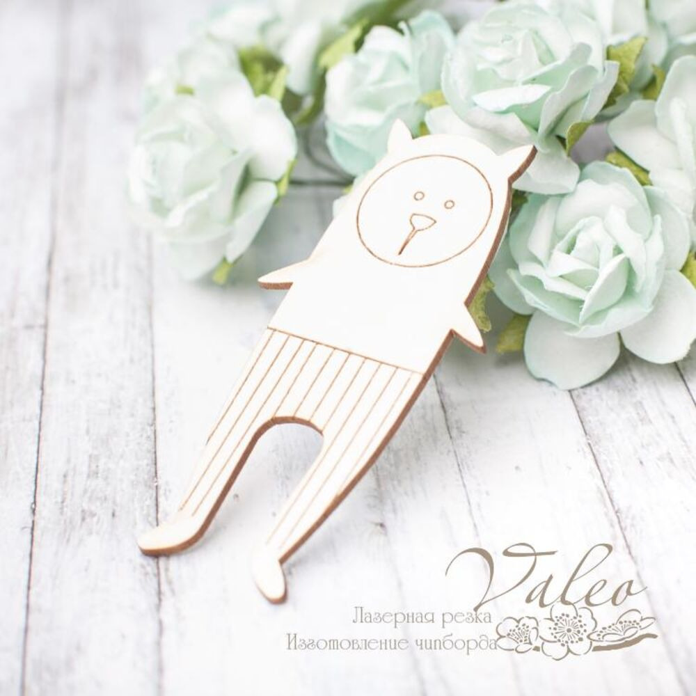 Чіпборд Valeo Котик 33*70мм V2857 виготовлений із пивного картону молочного кольору. Товщина картону 1,5 мм. Краї чисті, світло-коричневі. Застосовується як декоративні елементи при виготовленні альбомів, листівок, запрошень