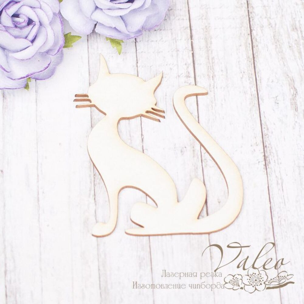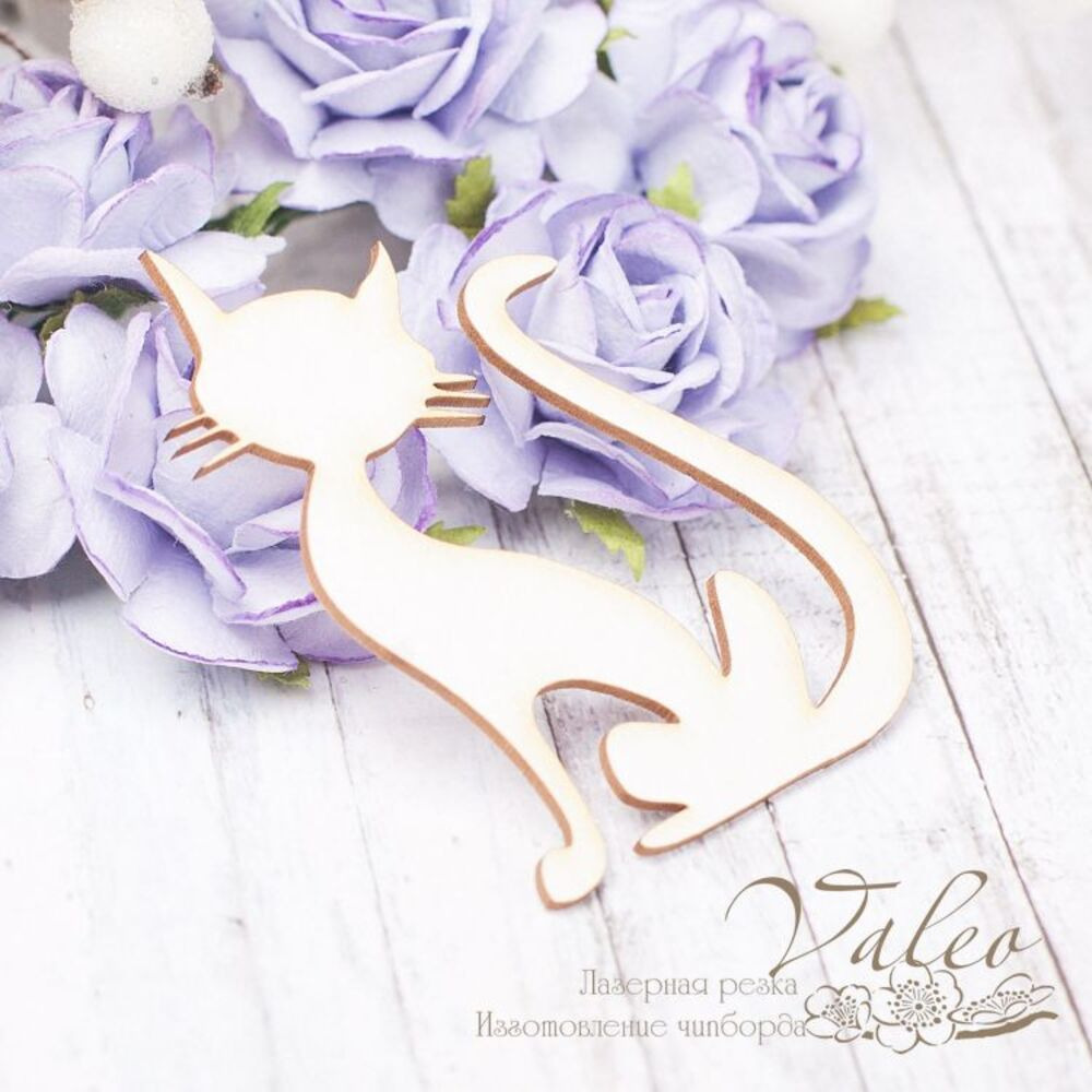Чіпборд Valeo Котик 51*64мм V2146 виготовлений із пивного картону молочного кольору. Товщина картону 1,5 мм. Краї чисті, світло-коричневі. Застосовується як декоративні елементи при виготовленні альбомів, листівок, запрошень.