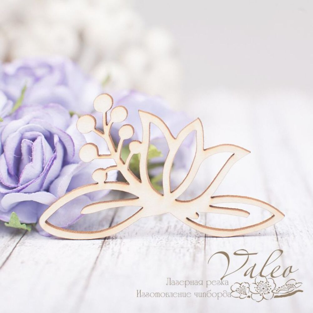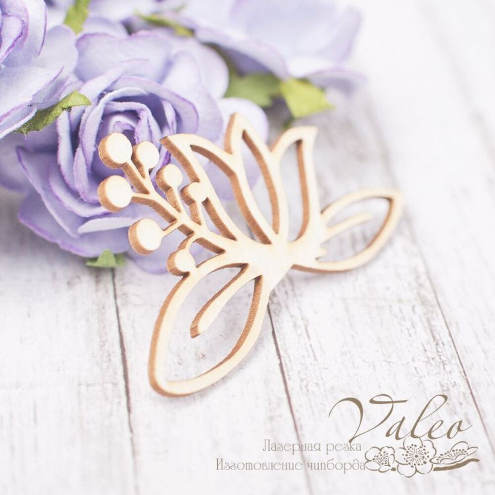 Чіпборд Valeo Квіткова композиція 55*33мм V2229 виготовлений із пивного картону молочного кольору. Товщина картону 1,5 мм. Краї чисті, світло-коричневі. Застосовується як декоративні елементи при виготовленні альбомів, листівок, запрошень