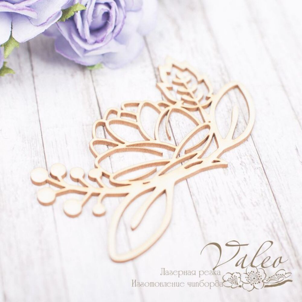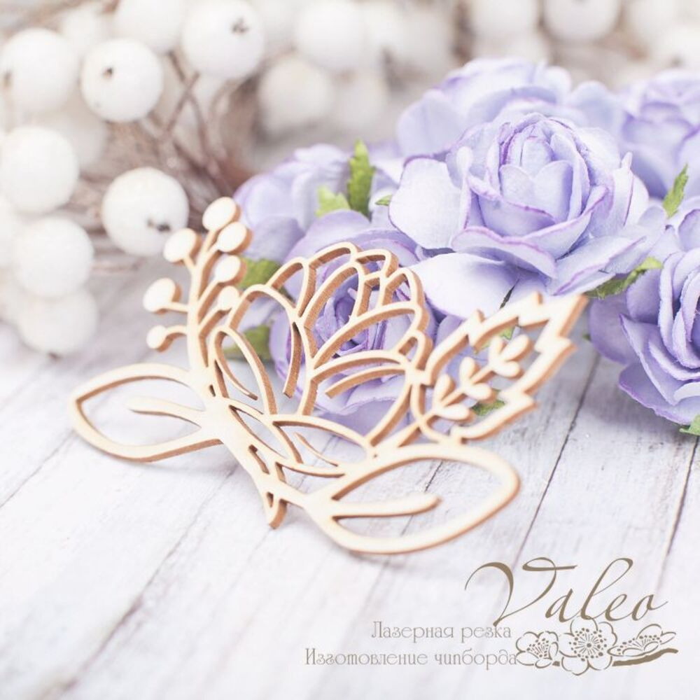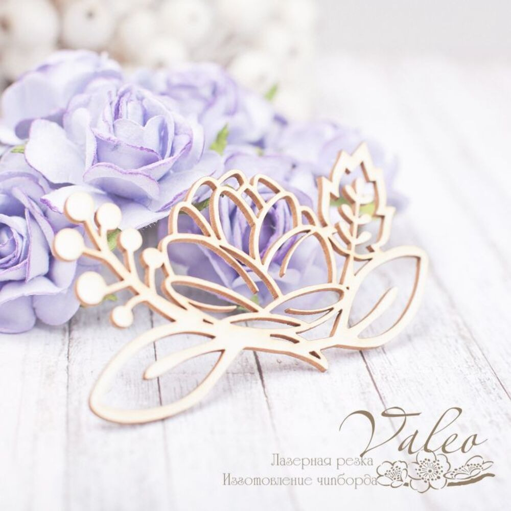 Чіпборд Valeo Квіткова композиція 77*44мм V2202 виготовлена з пивного картону молочного кольору. Товщина картону 1,5 мм. Краї чисті, світло-коричневі.Застосовується як декоративні елементи при виготовленні альбомів, листівок, запрошень