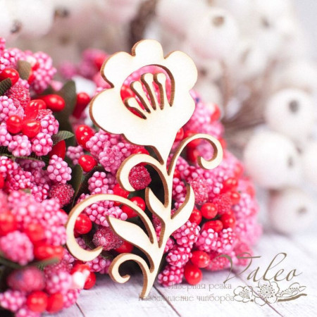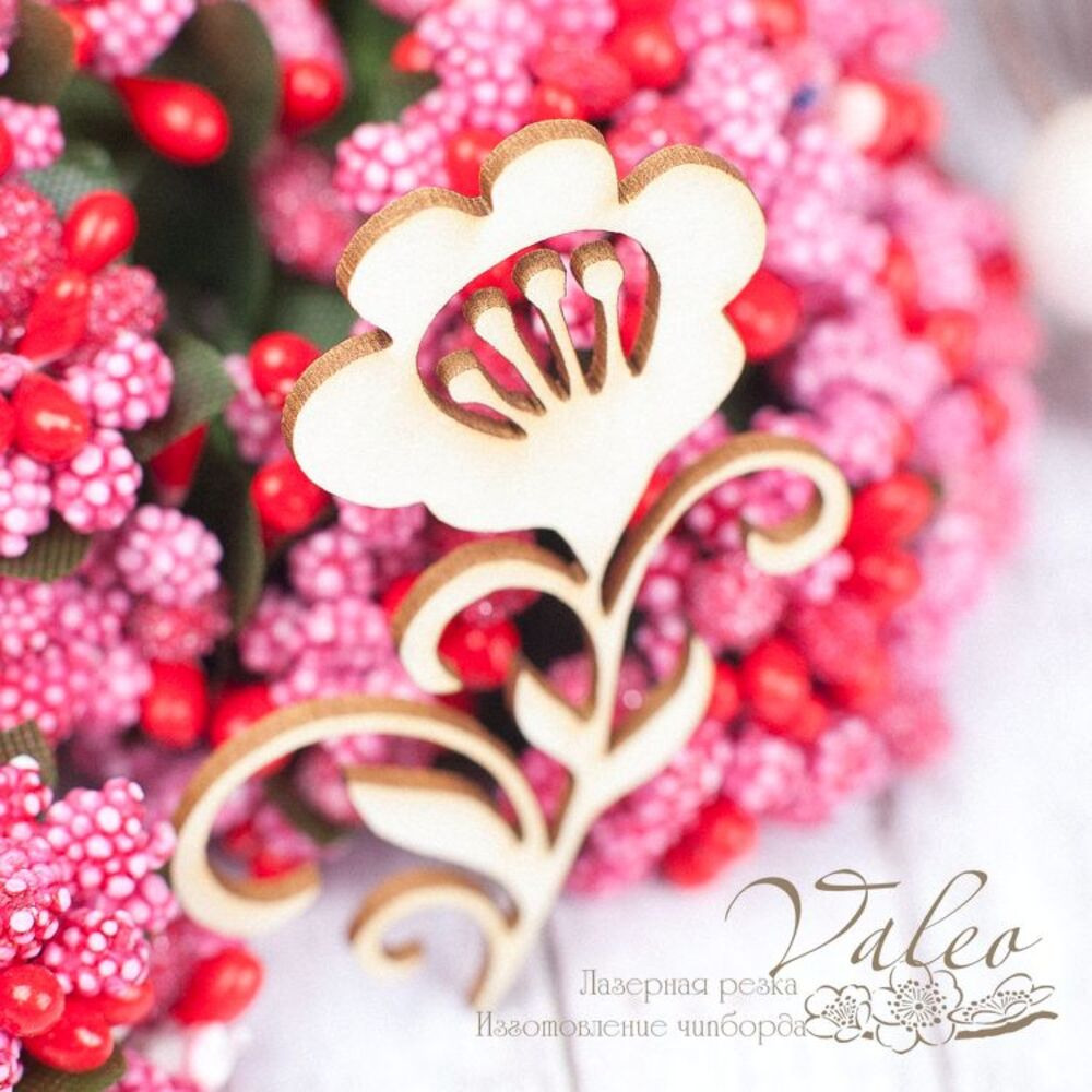 Чипборд Valeo Квіточка 42*45мм V1531 виготовлена з пивного картону молочного кольору. Товщина картону 1,5 мм. Краї чисті, світло-коричневі. Застосовується як декоративні елементи при виготовленні альбомів, листівок, запрошень