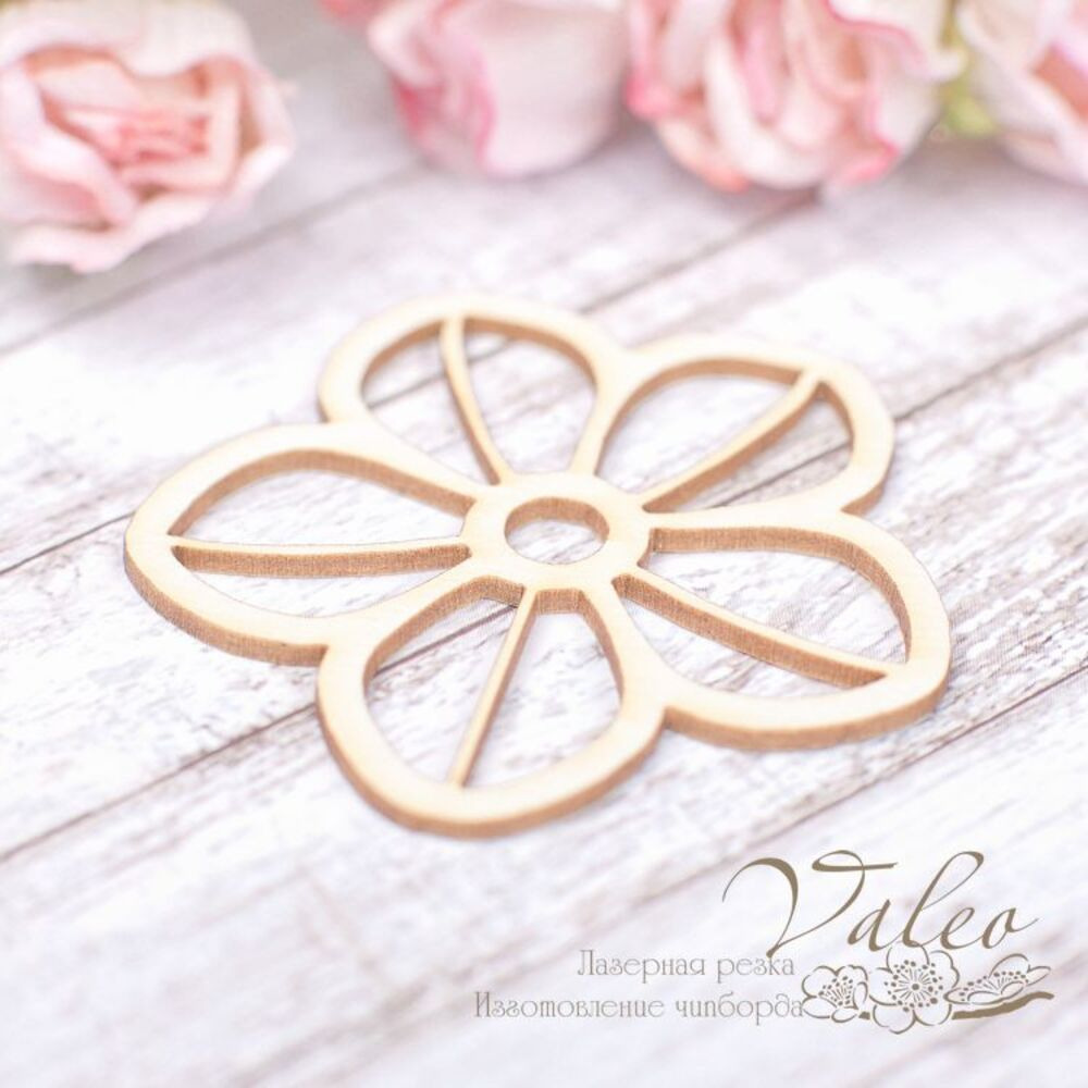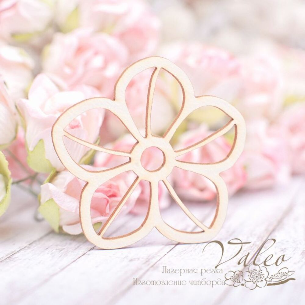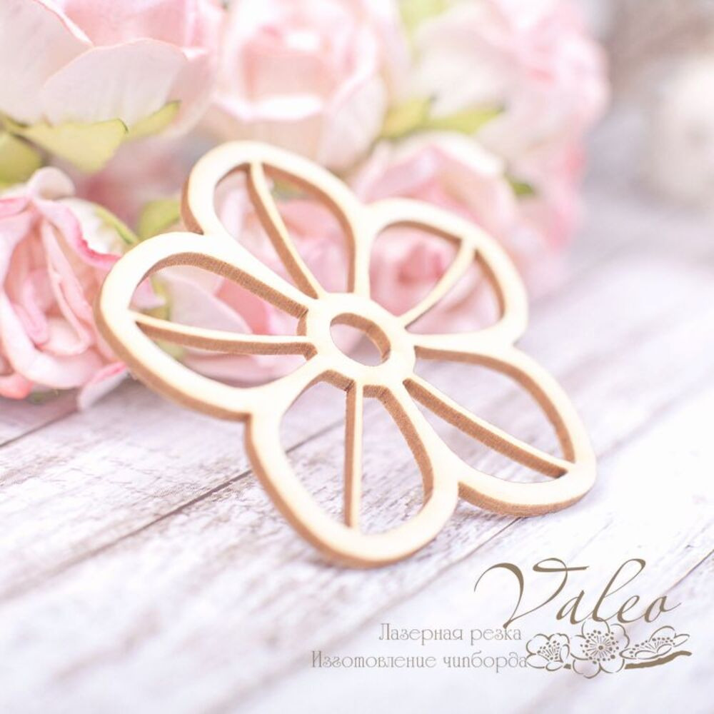Чіпборд Valeo Квіточка 47*45мм V1989 виготовлена з пивного картону молочного кольору. Товщина картону 1,5 мм. Краї чисті, світло-коричневі. Застосовується як декоративні елементи при виготовленні альбомів, листівок, запрошень
