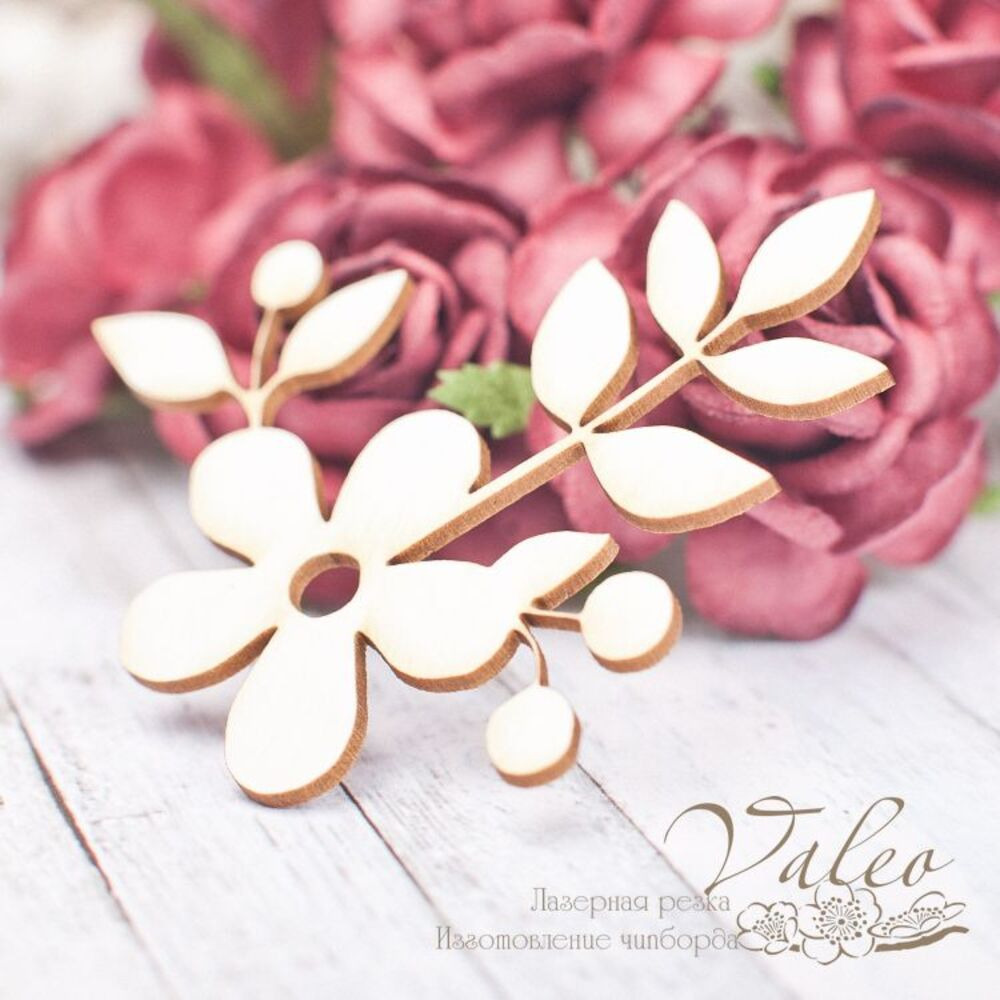 Чіпборд Valeo Квіточка 53*58мм V1733 виготовлена з пивного картону молочного кольору. Товщина картону 1,5 мм. Краї чисті, світло-коричневі. Застосовується як декоративні елементи при виготовленні альбомів, листівок, запрошень