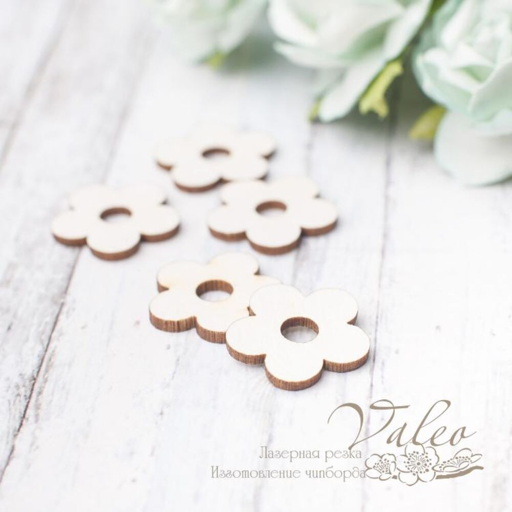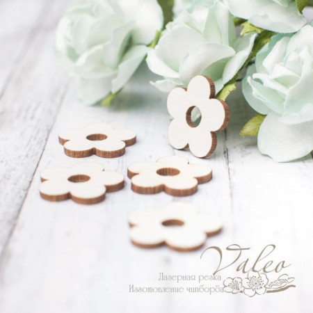 Чіпборд Valeo Квіточки 5шт 18*18мм V2886 виготовлений із пивного картону молочного кольору. Товщина картону 1,5 мм. Краї чисті, світло-коричневі. Застосовується як декоративні елементи при виготовленні альбомів, листівок, запрошень