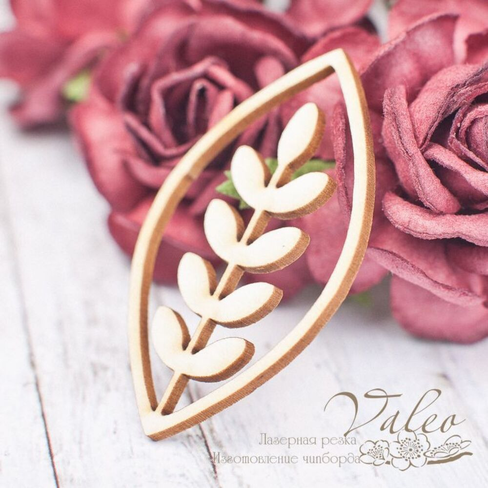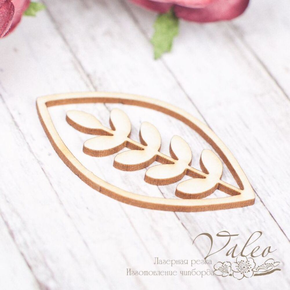 Чіпборд Valeo Листик 25*44мм V1762 виготовлений із пивного картону молочного кольору. Товщина картону 1,5 мм. Краї чисті, світло-коричневі. Застосовується як декоративні елементи при виготовленні альбомів, листівок, запрошень