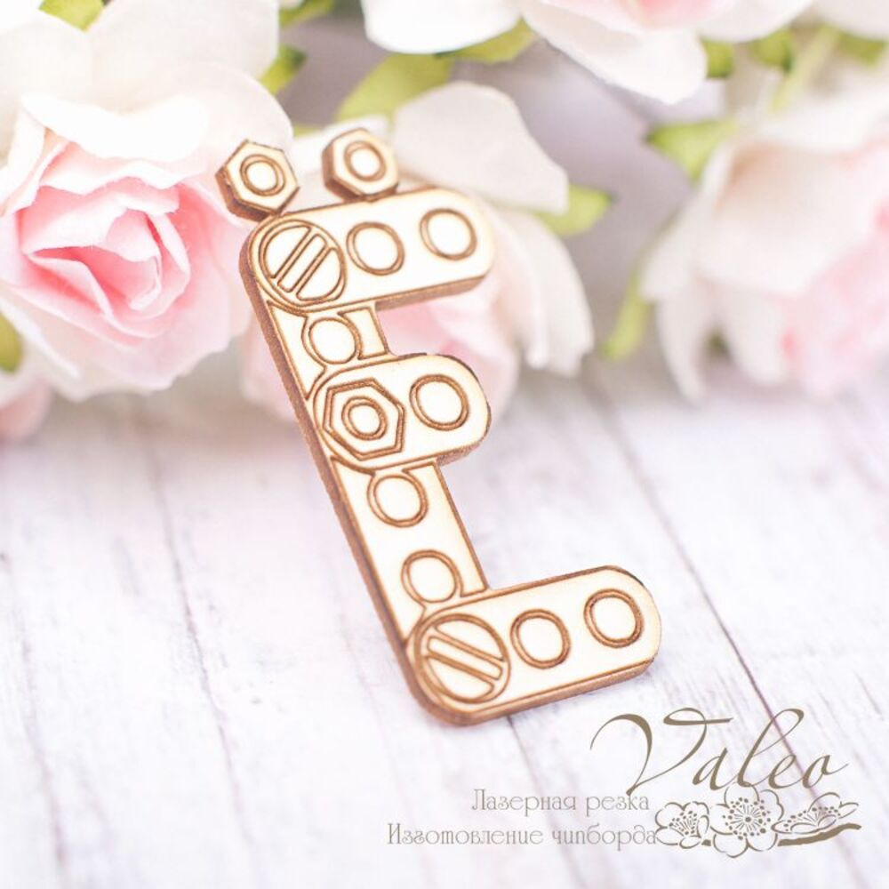 Чіпборд Valeo Буква Е 17*39мм V1822 виготовлений із пивного картону молочного кольору. Товщина картону 1,5 мм. Краї чисті, світло-коричневі. Застосовується як декоративні елементи при виготовленні альбомів, листівок, запрошень