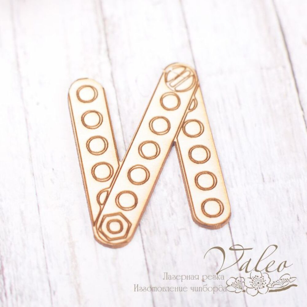 Чіпборд Valeo Буква І 23*34мм V1820 виготовлений із пивного картону молочного кольору. Товщина картону 1,5 мм. Краї чисті, світло-коричневі. Застосовується як декоративні елементи при виготовленні альбомів, листівок, запрошень