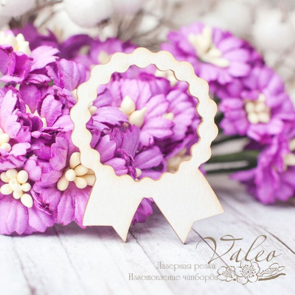 Чипборд Valeo Медаль 33*44мм V2568 изготовлен из пивного картона молочного цвета. Толщина картона 1,5мм. Края чистые, светло коричневые. Применяется в качестве декоративных элементов при изготовлении альбомов, открыток, пригласительных