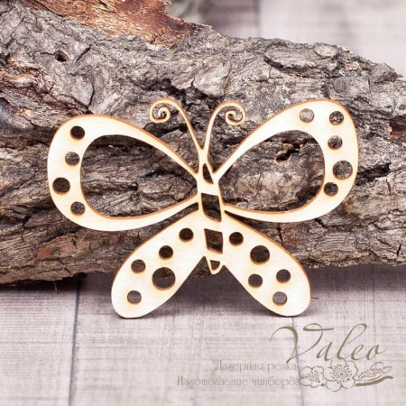 Чипборд Valeo Метелик2 57*42мм V1360 виготовлений з пивного картону молочного кольору. Товщина картону 1,5 мм. Краї чисті, світло-коричневі. Застосовується як декоративні елементи при виготовленні альбомів, листівок, запрошень