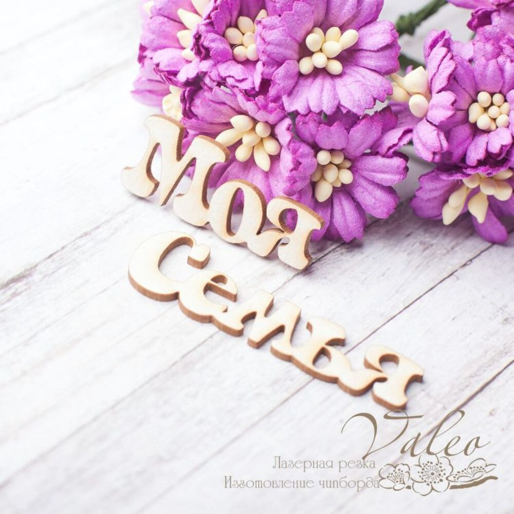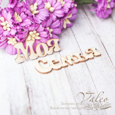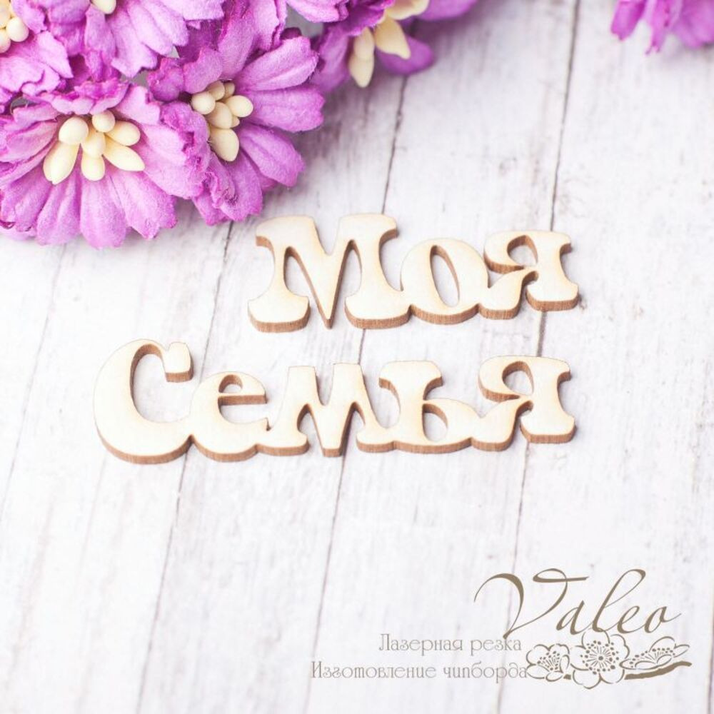 Чіпборд Valeo Моя сім'я 34*14мм 48*14мм V2466 виготовлений із пивного картону молочного кольору. Товщина картону 1,5 мм. Краї чисті, світло-коричневі. Застосовується як декоративні елементи при виготовленні альбомів, листівок, запрошень