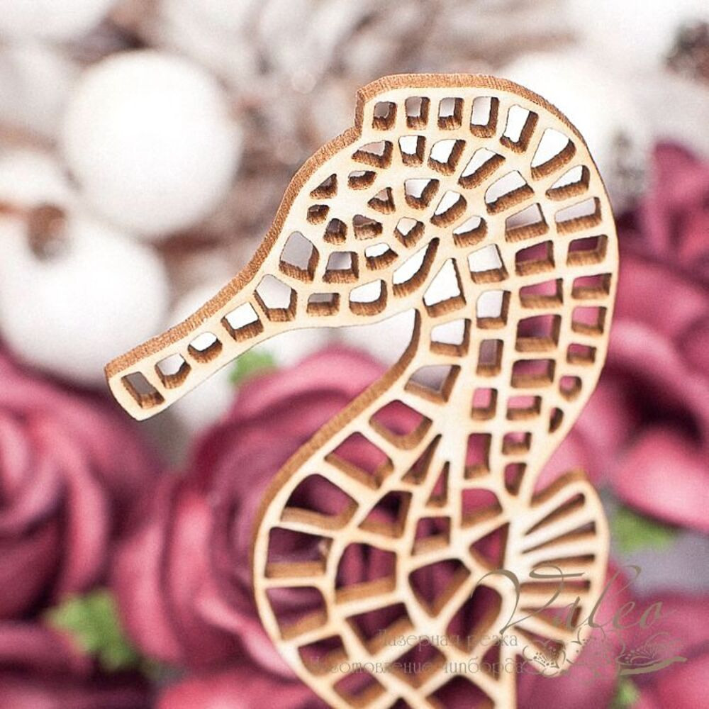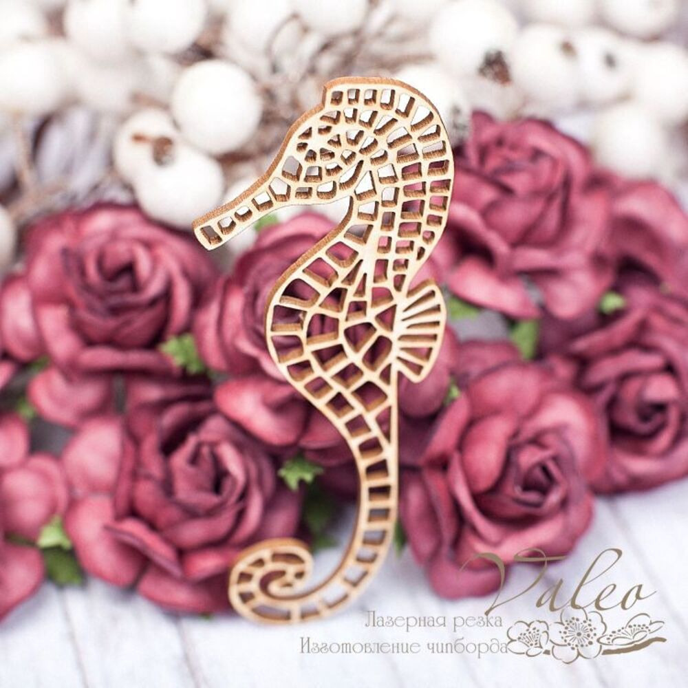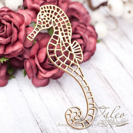Чіпборд Valeo Морський коник 34*86мм V1633 виготовлений із пивного картону молочного кольору. Товщина картону 1,5 мм. Краї чисті, світло-коричневі. Застосовується як декоративні елементи при виготовленні альбомів, листівок, запрошень