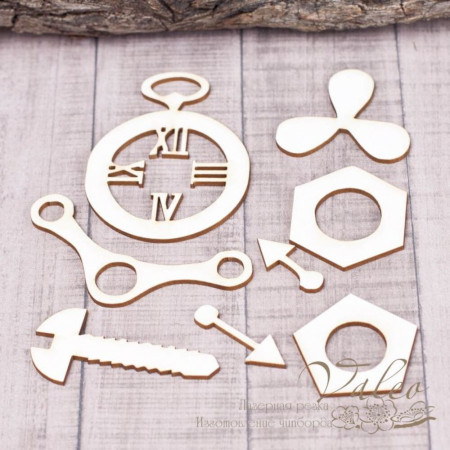 Чіпборд Valeo набір Годинник 118*78мм V1351 виготовлений з пивного картону молочного кольору. Товщина картону 1,5 мм. Краї чисті, світло-коричневі. Застосовується як декоративні елементи при виготовленні альбомів, листівок, запрошень