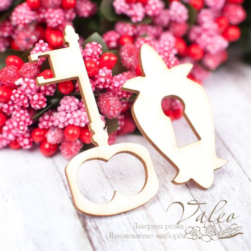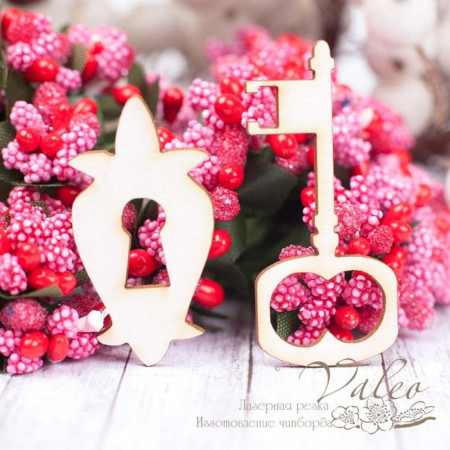 Чіпборд Valeo набір Ключик 43*5мм V1490 виготовлений із пивного картону молочного кольору. Товщина картону 1,5 мм. Краї чисті, світло-коричневі. Застосовується як декоративні елементи при виготовленні альбомів, листівок, запрошень