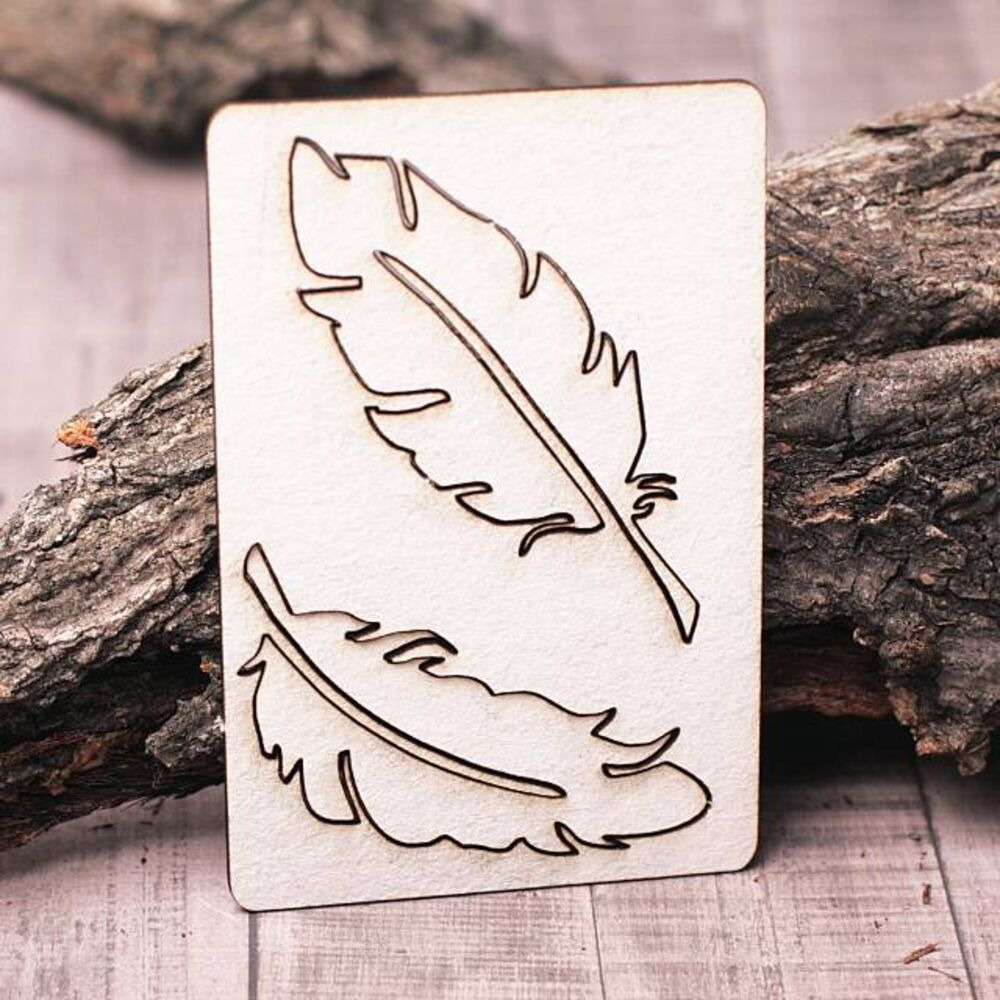 Чіпборд Valeo набір Пір'я 90*60мм V1147 виготовлений з пивного картону молочного кольору. Товщина картону 1,5 мм. Краї чисті, світло-коричневі. Застосовується як декоративні елементи при виготовленні альбомів, листівок, запрошень