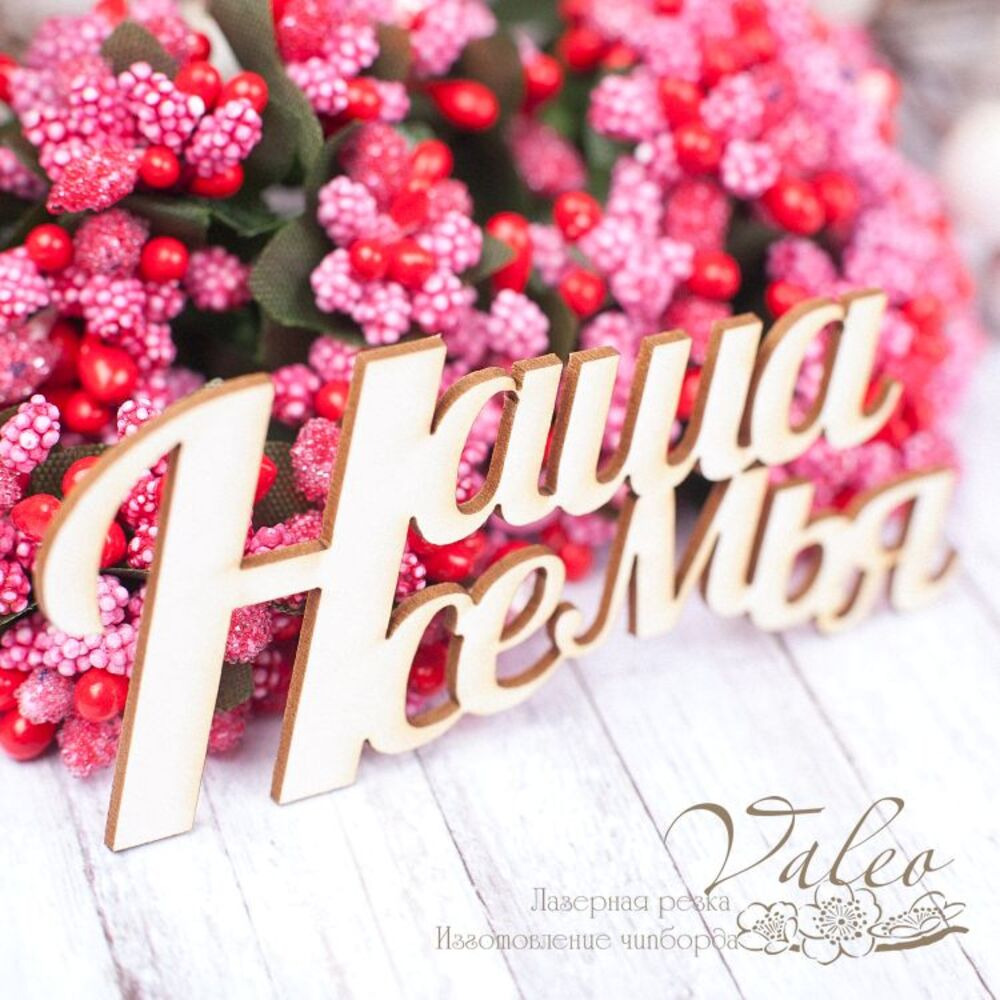 Чіпборд Valeo Наша родина 83*35мм V1575 виготовлена з пивного картону молочного кольору. Товщина картону 1,5 мм. Краї чисті, світло-коричневі. Застосовується як декоративні елементи при виготовленні альбомів, листівок, запрошень