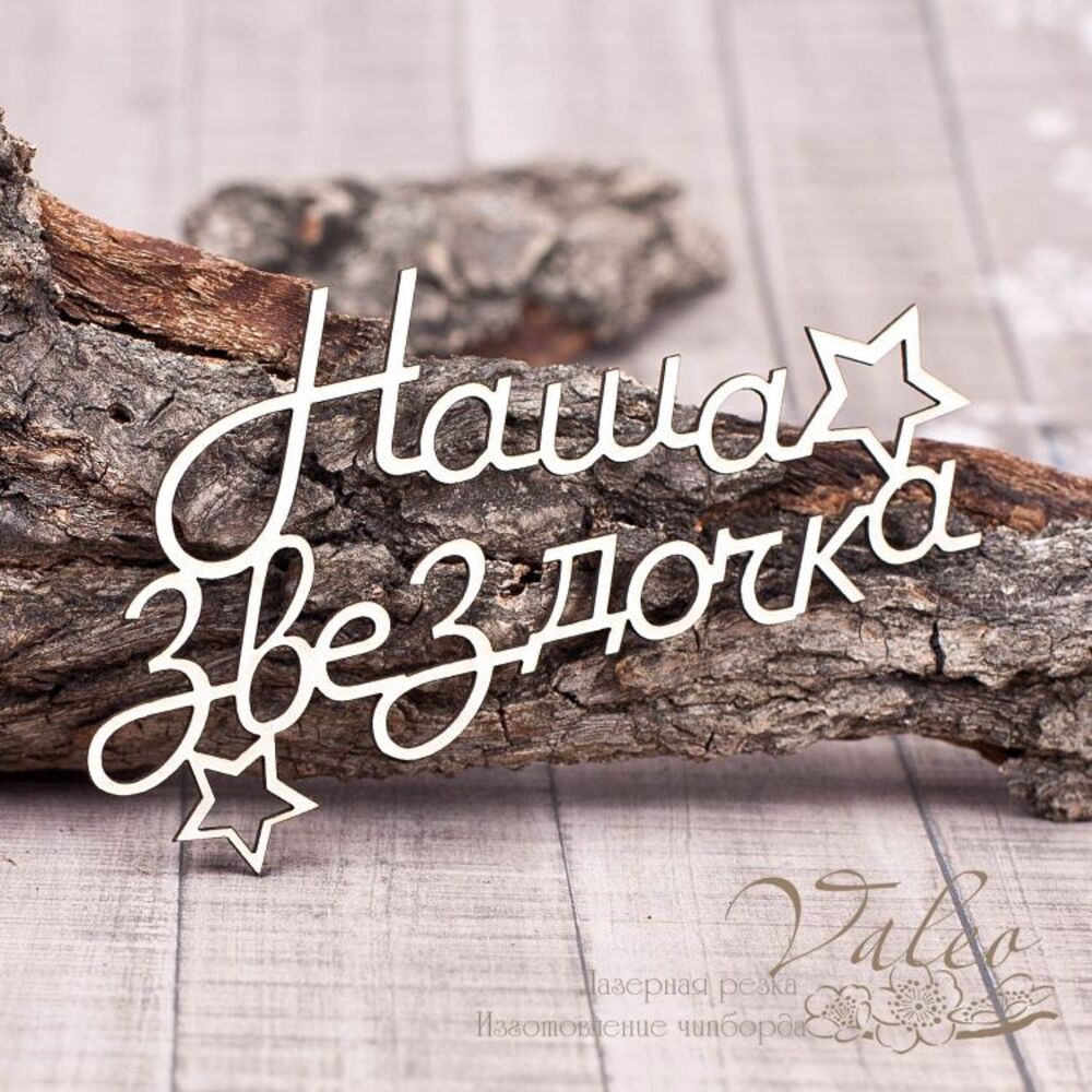Чіпборд Valeo Наша зірочка 100*57мм V1250 виготовлена з пивного картону молочного кольору. Товщина картону 1,5 мм. Краї чисті, світло-коричневі. Застосовується як декоративні елементи при виготовленні альбомів, листівок, запрошень