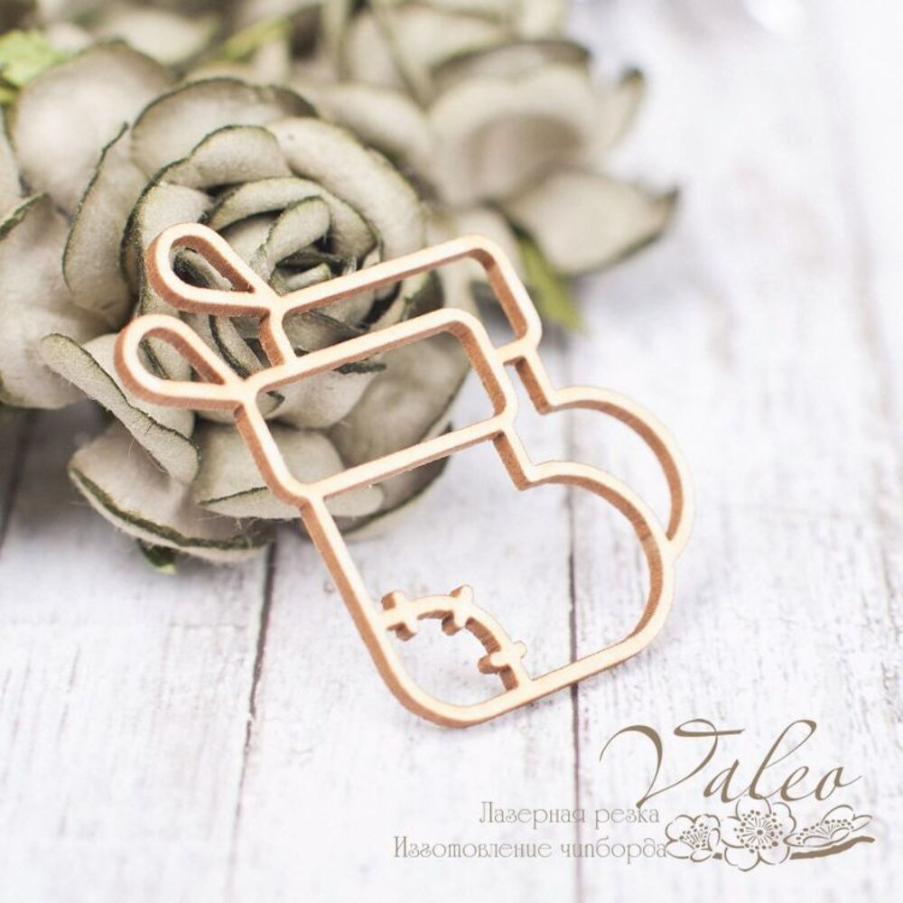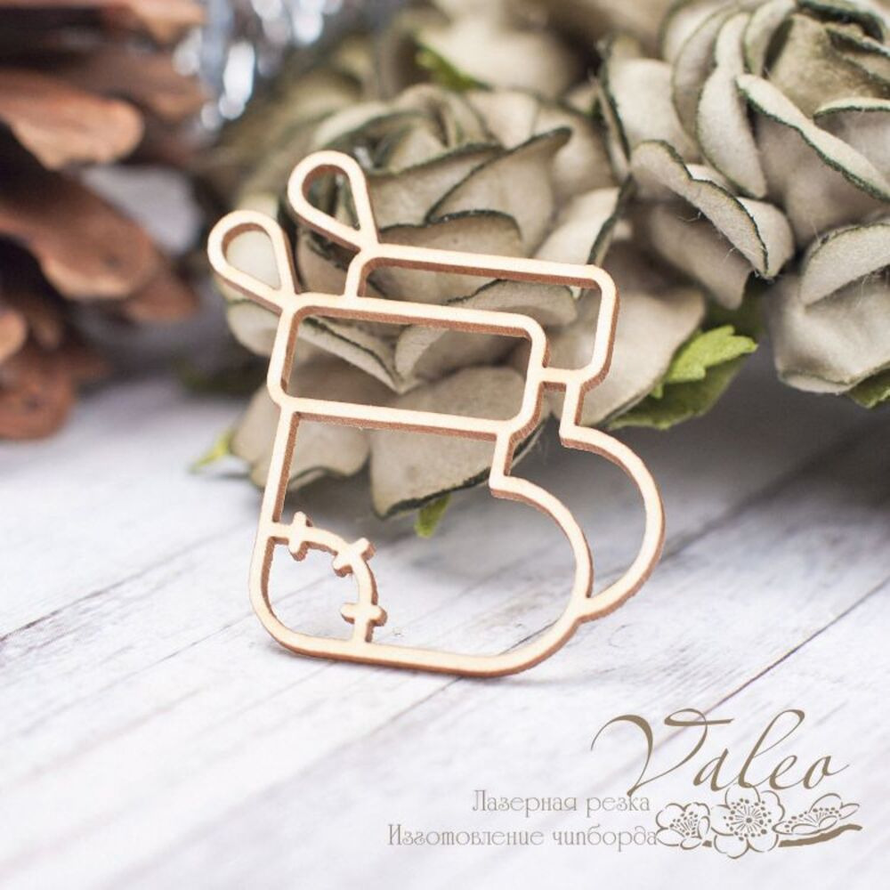 Чіпборд Valeo Новорічний чобіт 32*38мм V2264 виготовлений із пивного картону молочного кольору. Товщина картону 1,5 мм. Краї чисті, світло-коричневі. Застосовується як декоративні елементи при виготовленні альбомів, листівок, запрошень
