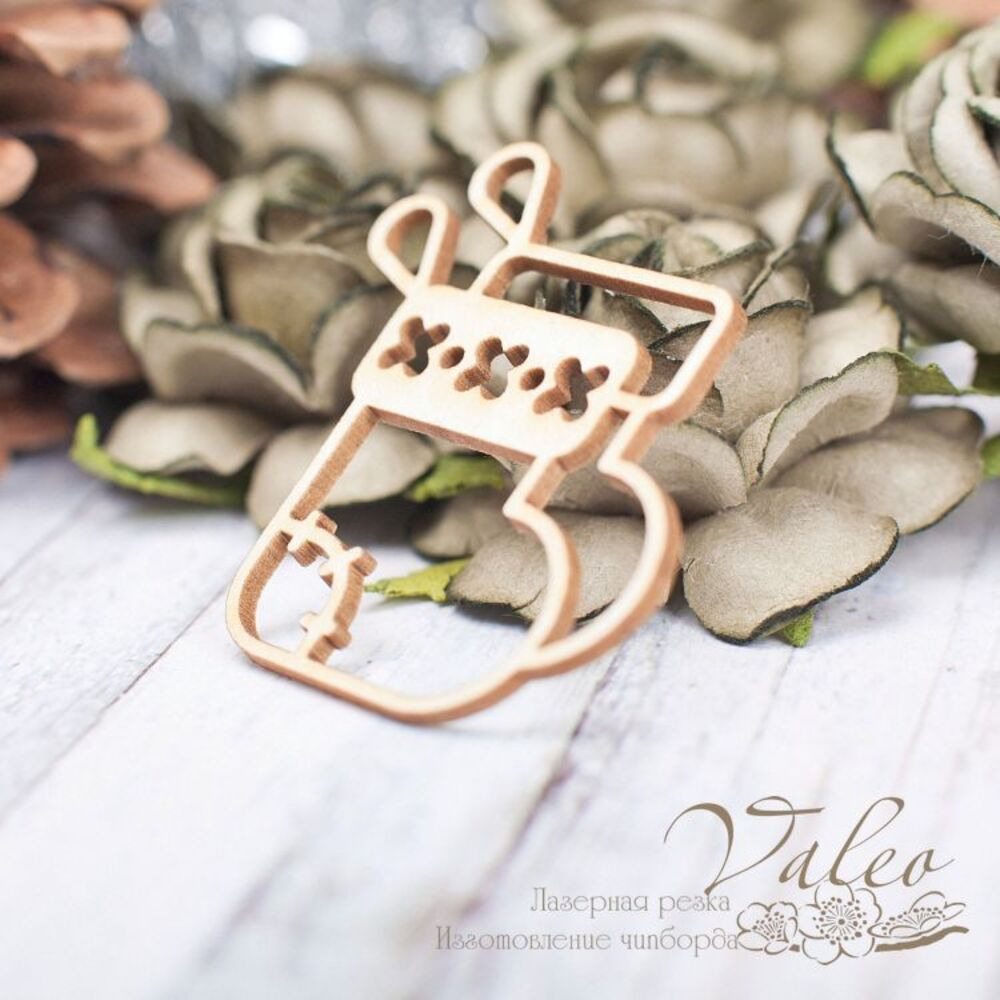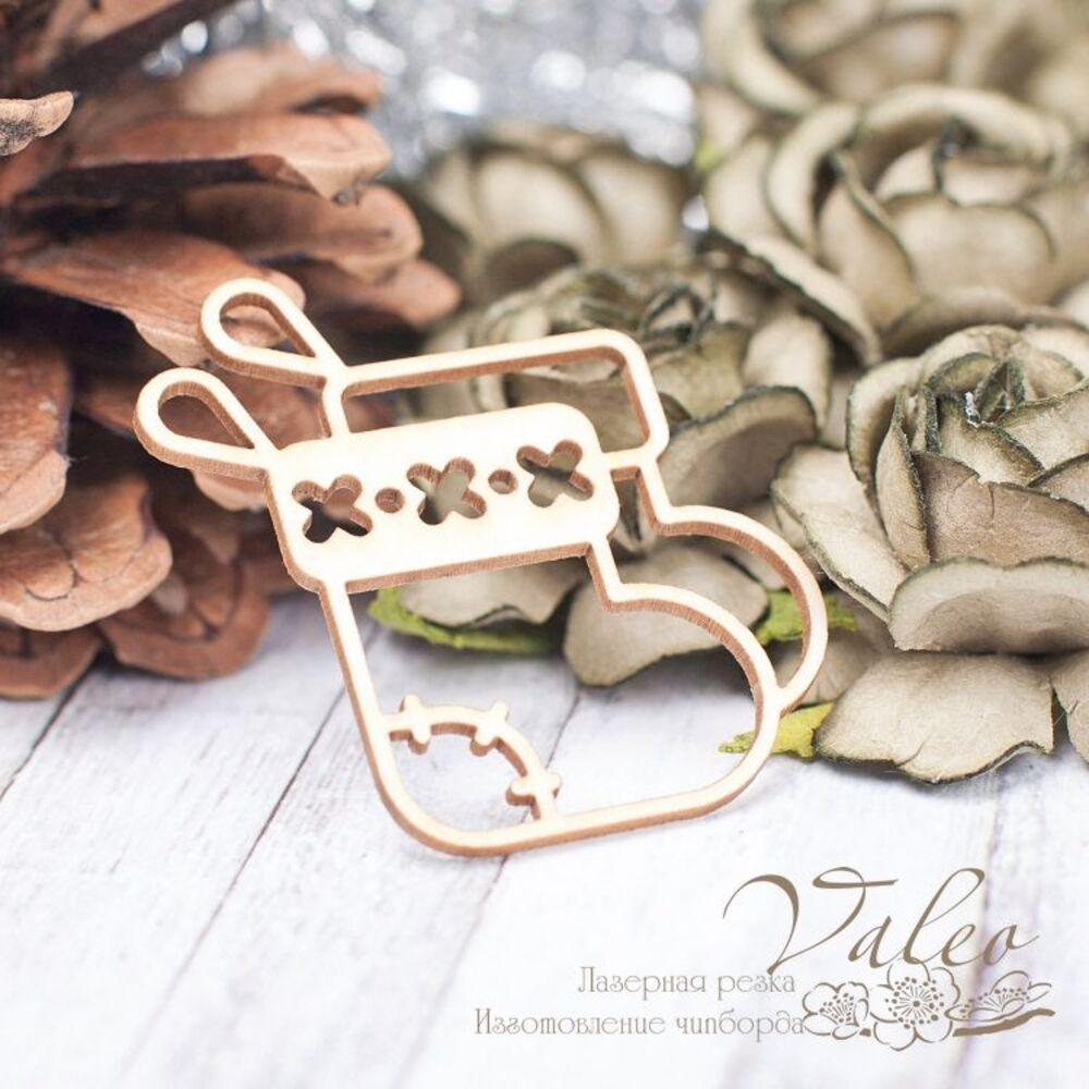 Чіпборд Valeo Новорічний чобіток 36*44мм V2272 виготовлений із пивного картону молочного кольору. Товщина картону 1,5 мм.Краї чисті, світло-коричневі. Застосовується як декоративні елементи при виготовленні альбомів, листівок, запрошень