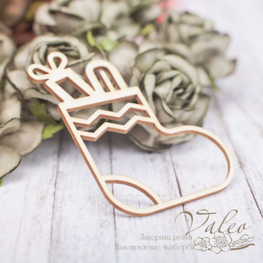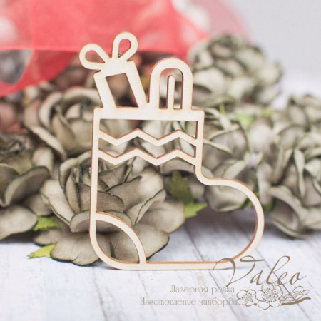 Чіпборд Valeo Новорічний чобіт 45*55мм V2211 виготовлений із пивного картону молочного кольору. Товщина картону 1,5 мм. Краї чисті, світло-коричневі. Застосовується як декоративні елементи при виготовленні альбомів, листівок, запрошень
