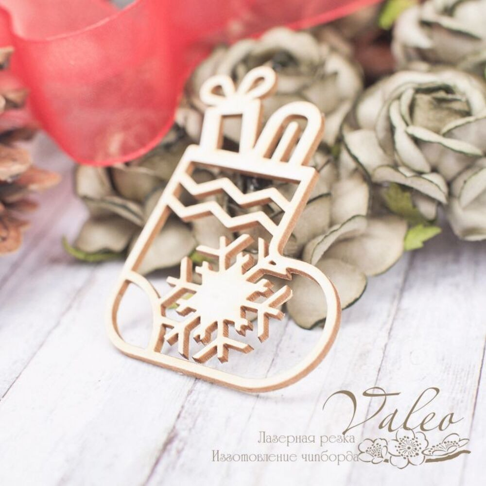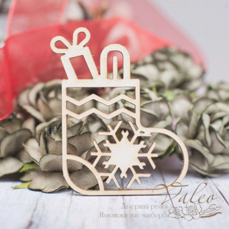 Чіпборд Valeo Новорічний чобіт 46*56мм V2212 виготовлений із пивного картону молочного кольору. Товщина картону 1,5 мм. Краї чисті, світло-коричневі. Застосовується як декоративні елементи при виготовленні альбомів, листівок, запрошень