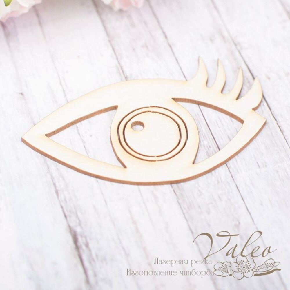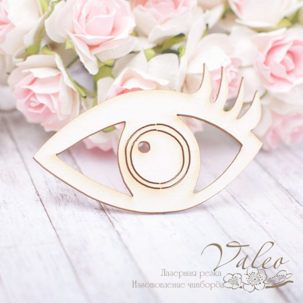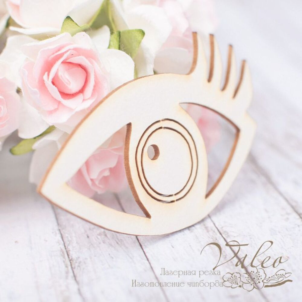 Чіпборд Valeo Око 65*42мм V1931 виготовлене з пивного картону молочного кольору. Товщина картону 1,5 мм.Краї чисті, світло-коричневі. Застосовується як декоративні елементи при виготовленні альбомів, листівок, запрошень