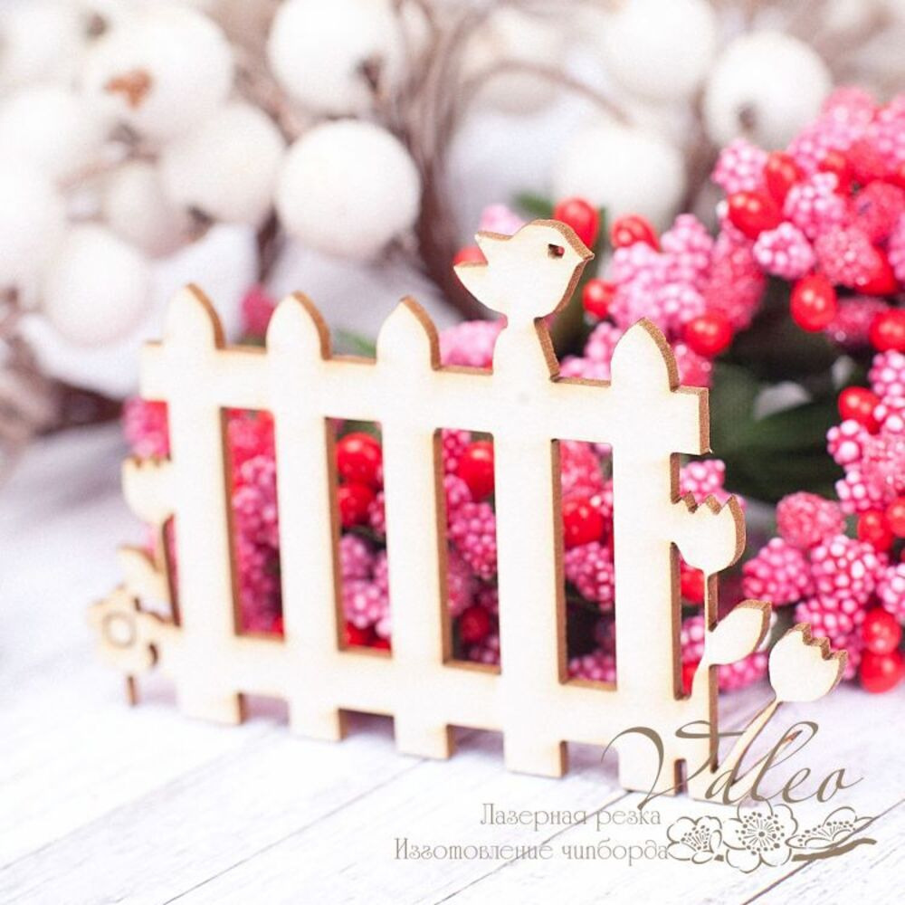 Чіпборд Valeo Парканчик 73*47мм V1538 виготовлений із пивного картону молочного кольору. Товщина картону 1,5 мм. Краї чисті, світло-коричневі. Застосовується як декоративні елементи при виготовленні альбомів, листівок, запрошень