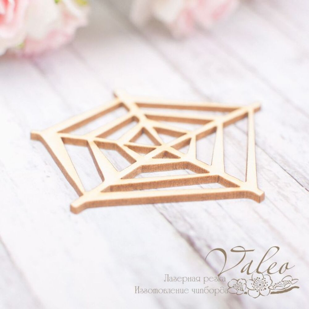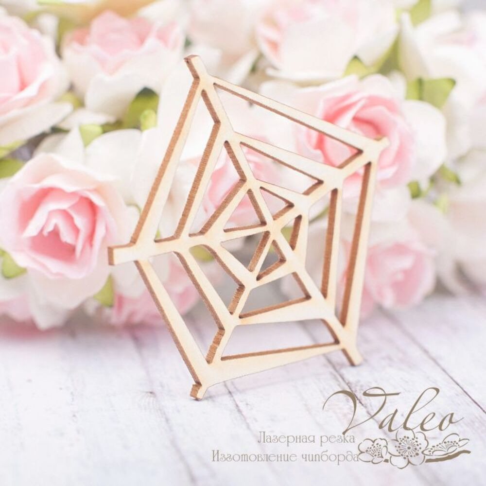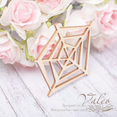 Чіпборд Valeo Павутина 53*48мм V1932 виготовлений із пивного картону молочного кольору. Товщина картону 1,5 мм. Краї чисті, світло-коричневі. Застосовується як декоративні елементи при виготовленні альбомів, листівок, запрошень