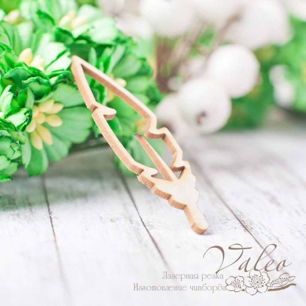 Чіпборд Valeo Перо 46*15мм V2311 виготовлений із пивного картону молочного кольору. Товщина картону 1,5 мм. Краї чисті, світло-коричневі. Застосовується як декоративні елементи при виготовленні альбомів, листівок, запрошень
