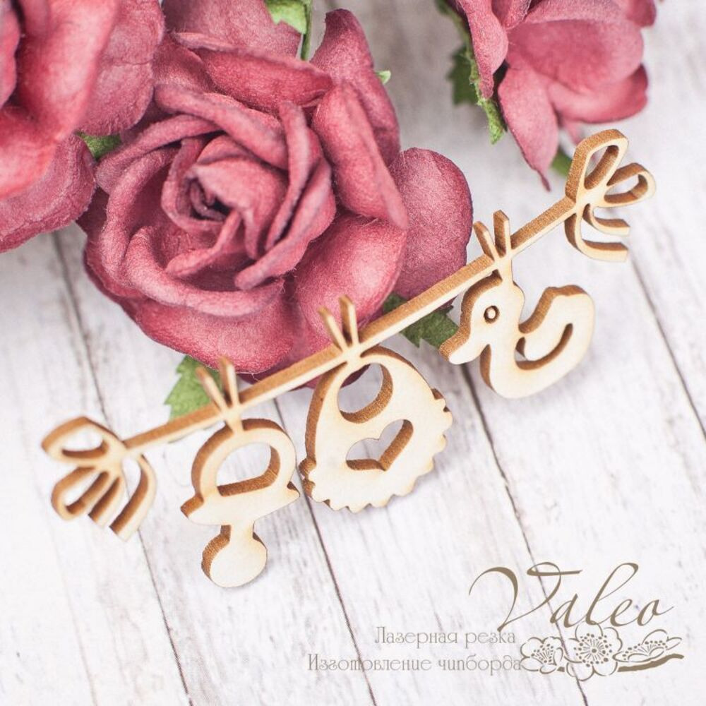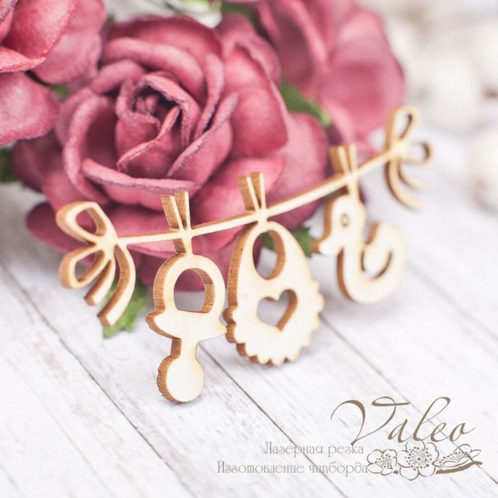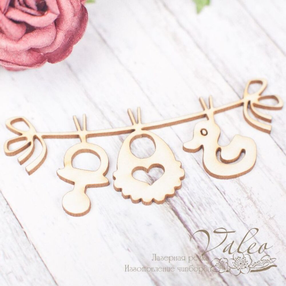 Чіпборд Valeo Підвіска дитяча 62*25мм V1723 виготовлена з пивного картону молочного кольору. Товщина картону 1,5 мм. Краї чисті, світло-коричневі. Застосовується як декоративні елементи при виготовленні альбомів, листівок, запрошень