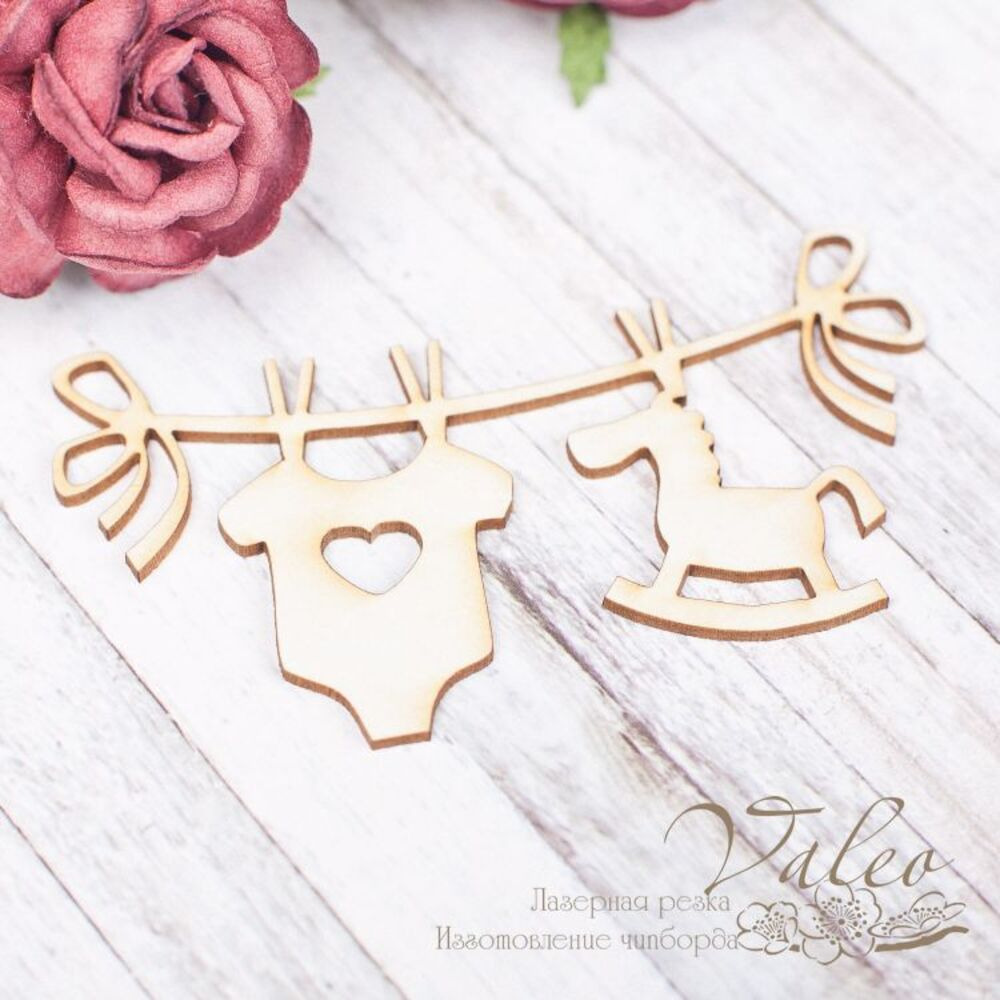 Чіпборд Valeo Підвіска дитяча 75*41мм V1722 виготовлена з пивного картону молочного кольору. Товщина картону 1,5 мм. Краї чисті, світло-коричневі. Застосовується як декоративні елементи при виготовленні альбомів, листівок, запрошень